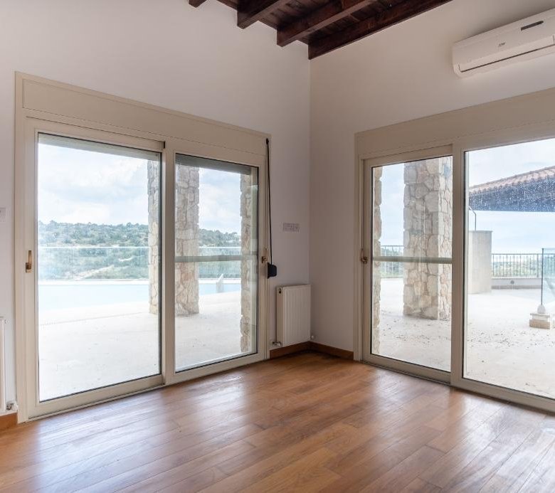 The property is a superb 3 bedroom villa with a swimming pool in a land area of 14,382 sqm in Neo Chorio. The property enjoys panoramic views of the peninsular sea coast and is surrounded by amazing natural beauty. It benefits from ample ancillary spaces including sauna, patio, kiosk, BBQ area and covered parking spaces. The villa has a covered area of 220sqm. It consists of an open plan dining room, a kitchen, a living room with fireplace, a sauna, 3 bedrooms (of which the master bedroom has a walking closet), 3 bathrooms and a veranda. It is located 800m from the center of the village and 750m from Neo Chorio – Polis Chrysochous road. It offers close proximity to amenities such as mini markets, traditional taverns and cafes. The nearest beach is 7mins drive away.