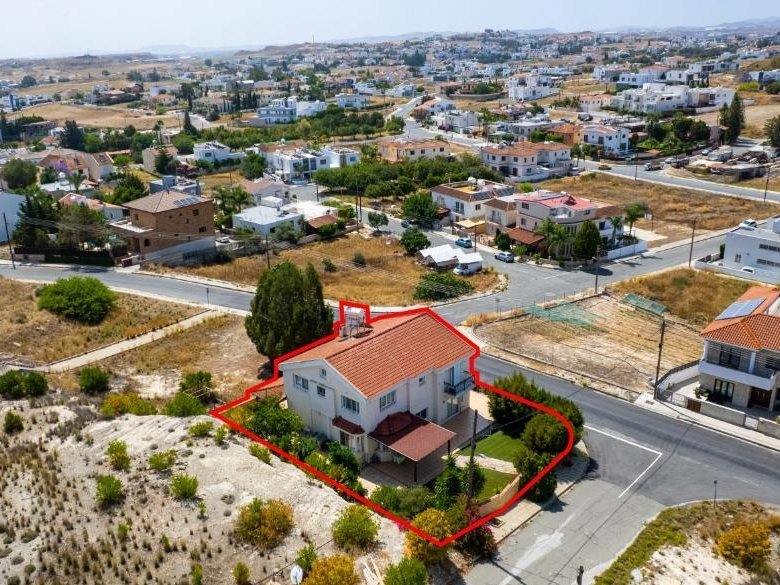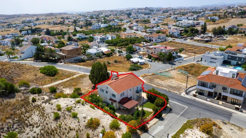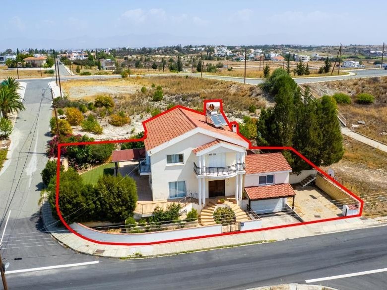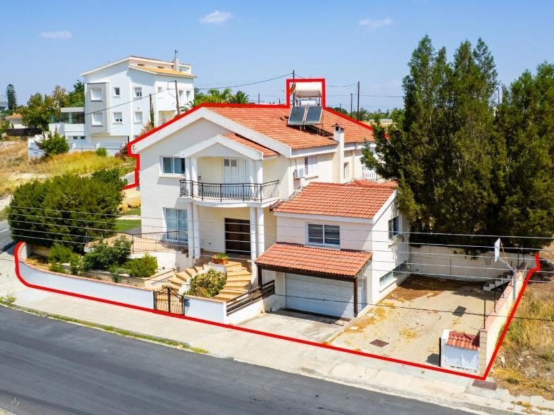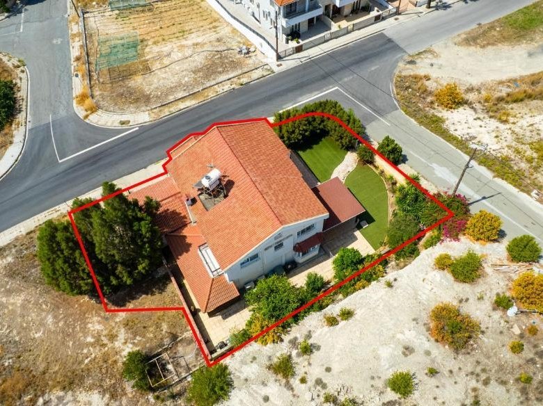 The property is a two-storey detached house with a basement in Dali. It is located along Palaion Patron Germanou street, 600m from Giannou Kranidioti Avenue and 960m from Lemessou Avenue, in Agion Konstantinou & Elenis quarter. The house has a covered area of 249sqm, covered verandas of 31sqm and a basement of 155sqm. The ground floor consists of an open plan kitchen with dining/living room area, an office, a guest toilet and a laundry room. The first floor comprises 4 bedrooms (one with an en-suite shower and a wardrobe) and a bathroom with a toilet. The basement includes an open plan storage area, parking spaces and a shower with a toilet. The house is built within a corner plot of 653sqm. It has a total frontage of 50m. There is a consensual agreement for the delivery of free and vacant possession by 31/10/2025.