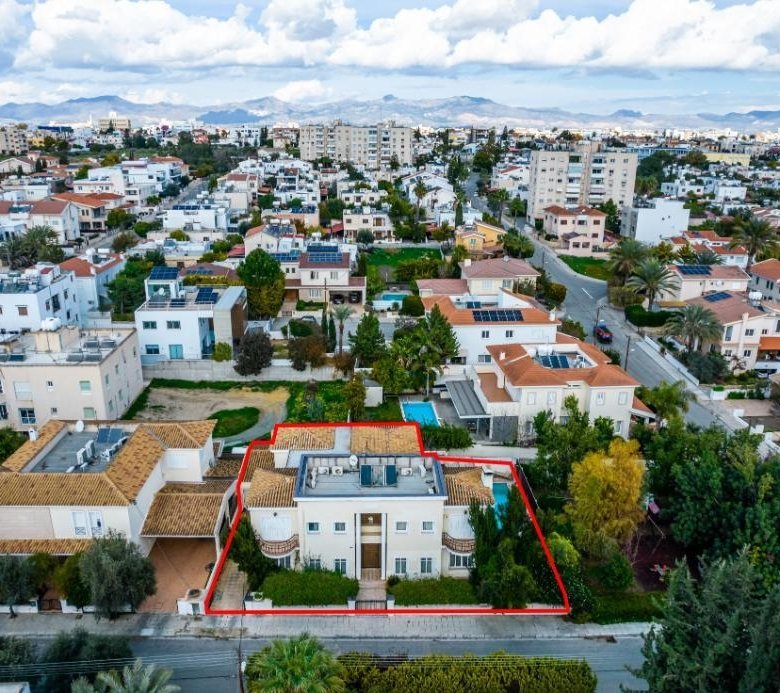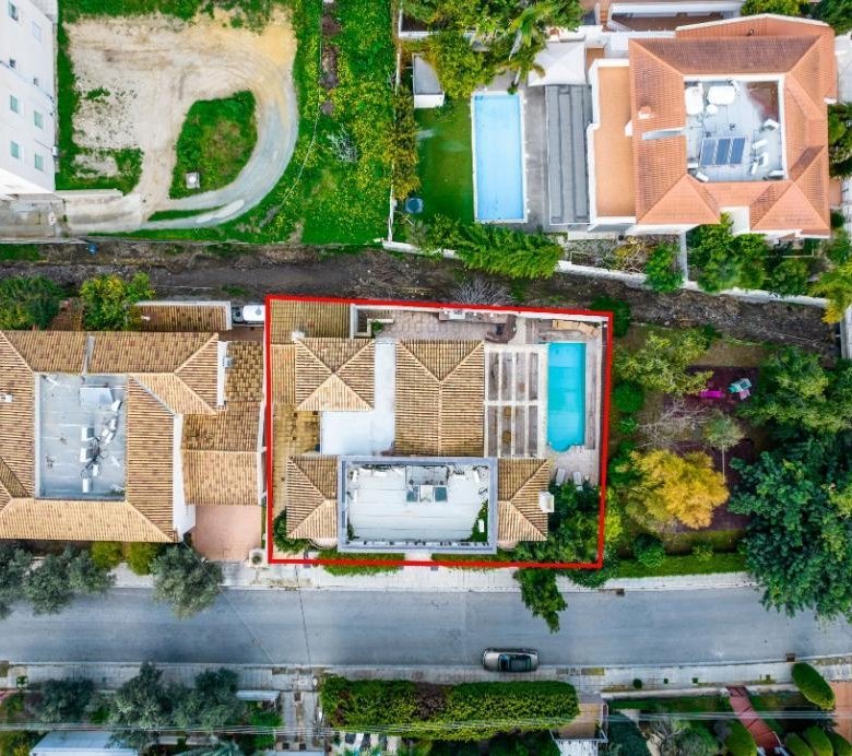 The property is a spacious 5 bedroom detached house with a swimming pool in Aglantzia. It is located few steps away from Athalassa National Forest Park and 550m from RIK avenue. The house has a covered area of 375sqm, 10sqm covered verandas, 6sqm uncovered verandas and 18sqm basement area. It also benefits from a covered parking area of 43sqm. The ground floor of the house consists of a living room, dining room, office space, kitchen with an extra dining room, and a guests toilet. The first floor consists of five bedrooms, one bathroom and two uncovered verandas. The property is built within a plot with an area of 550sqm. The property offers close proximity to all amenities and easy access to Nicosia’s city center and the highway. There is a consensual agreement for the delivery of free and vacant possession by 31/10/2025.