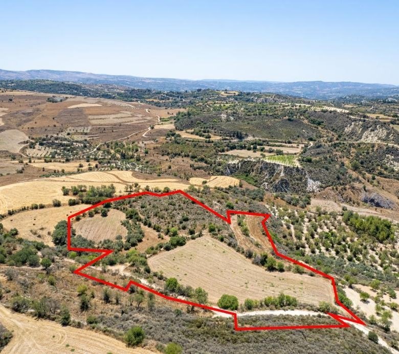 The property is an agricultural field in Thrinia. It is located 900m from the center of the village and 1,5km from Thrinia-Lasa road. The field has an area of 29,098sqm. It abuts onto a public road with a frontage of 7m and onto an under-registration dirt road along its northern boundary.