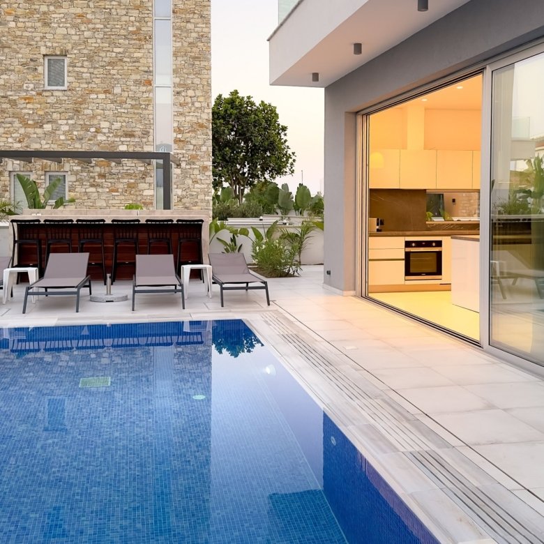 This centrally located 4-bedroom villa in Ayia Napa is just a short stroll from the monastery square and even closer to the sea. Situated in an exclusive gated complex of only eight villas. With a sandy Blue Flag beach, essential amenities, and vibrant entertainment options all within walking distance.