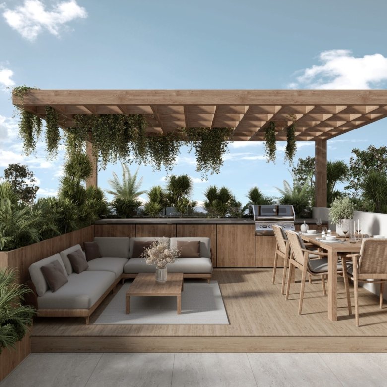 The villas boast expansive open-plan layouts that seamlessly connect indoor and outdoor living areas, allowing residents to fully enjoy the natural beauty of their surroundings. Private swimming pools, large rooftop terraces, and elegant architectural details.