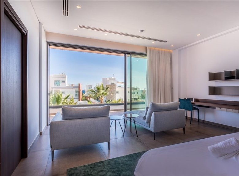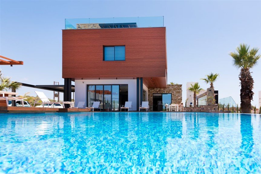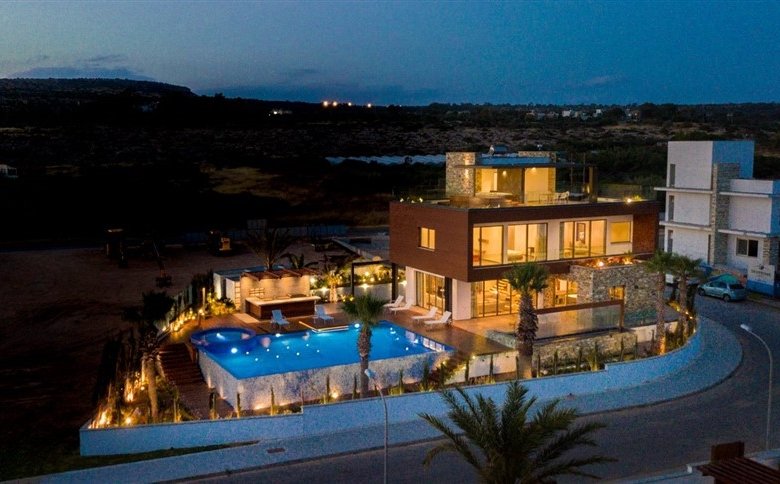 This luxurious villa is located on an exclusive development of beachfront villas, 2 km from the center of Ayia Napa, providing the ultimate tranquility at your new home. In an unspoiled setting by the turquoise waters of Mediterranean Sea, this 3-level property with its vast indoor and outdoor areas, pool and roof garden, it will take your breath away.