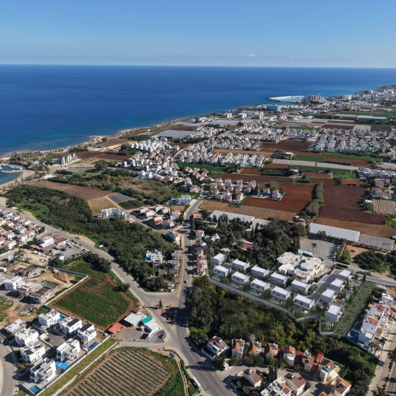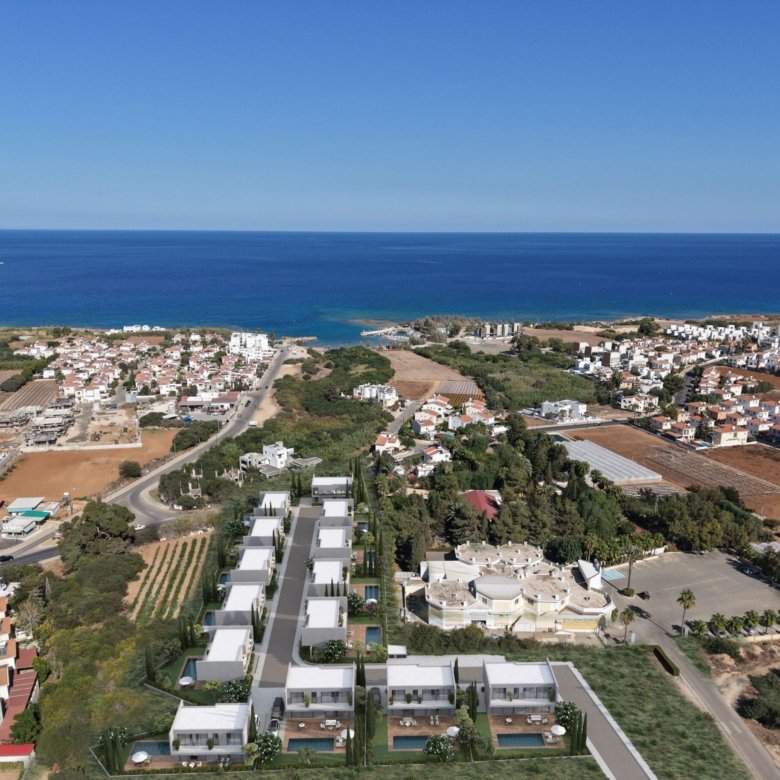 This modern 3-bedroom house is located in the popular resort town of Protaras, Famagusta, just minutes from some of Europe’s most revered beaches. Part of an exclusive gated community, the residence offers a contemporary open-plan design with bright, spacious interiors and is within walking distance to the sea. Each home features a private swimming pool, granite kitchen worktops, and high-quality sanitary fixtures, creating an ideal setting for comfortable seaside living. Provision for all essential modern amenities is also included.