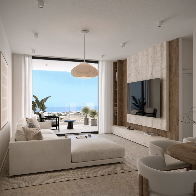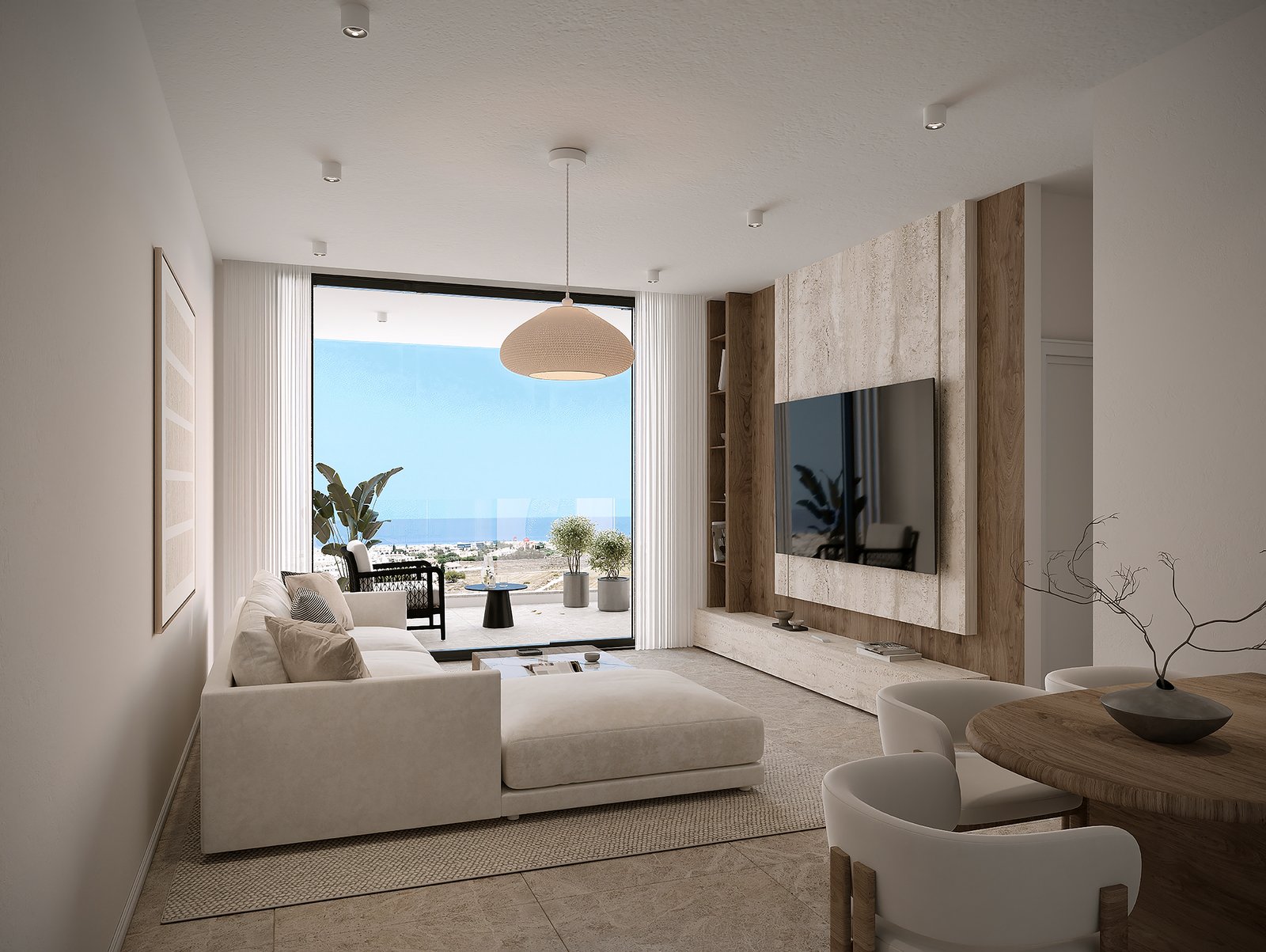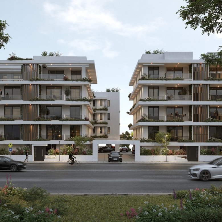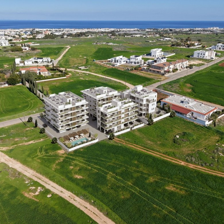 This modern project is located in Paralimni, Famagusta, just 3.5 km from Paralimni Marina and a few minutes’ drive from the seaside resort of Protaras. The development consists of three blocks and offers a communal swimming pool, landscaped green areas, and a playground. The apartment features 2 bedrooms, 2 bathrooms, and a covered veranda.