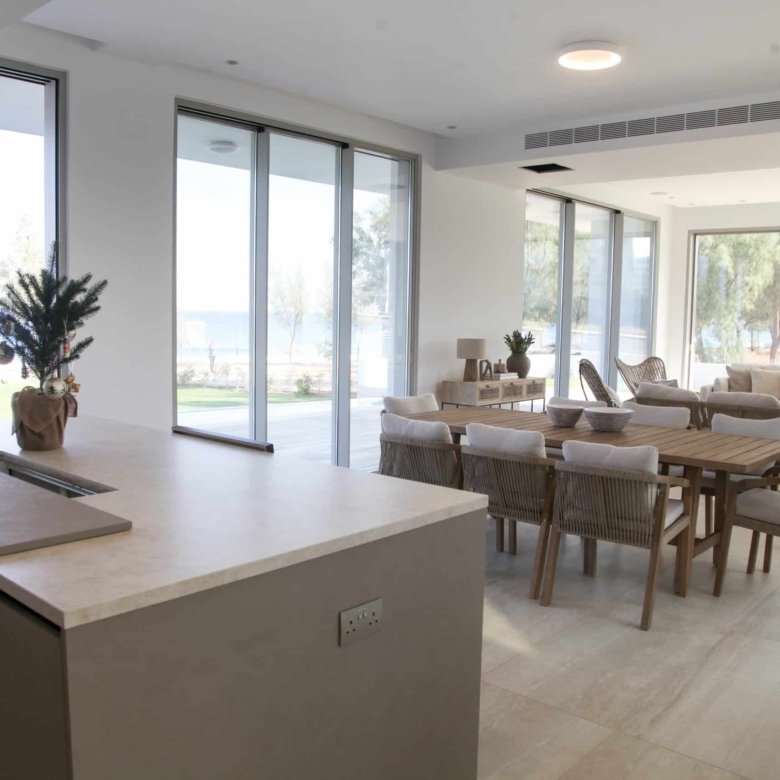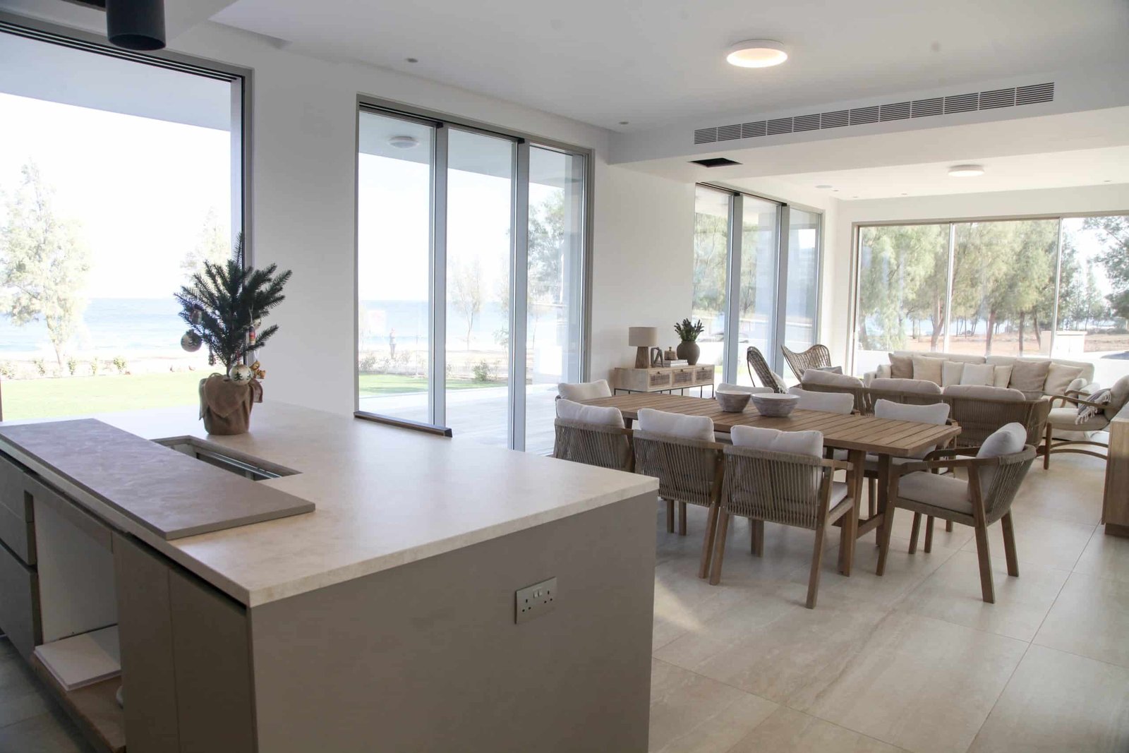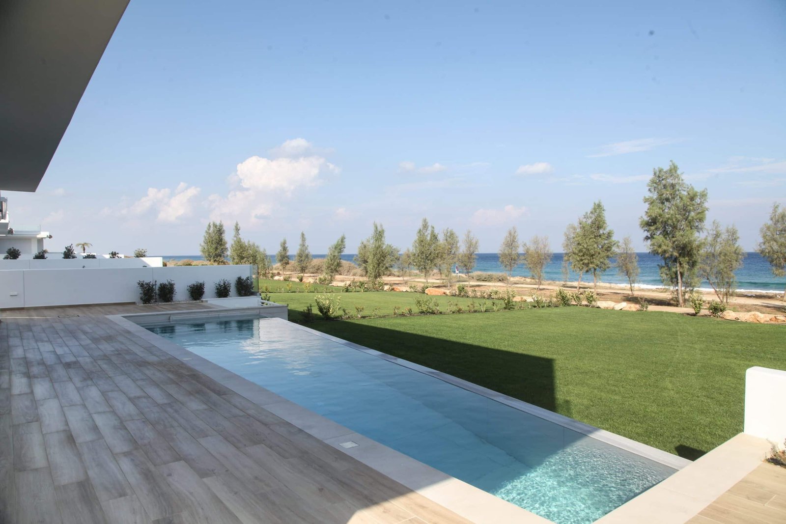 This stunning beachfront 7-bedroom villa is perfectly situated in Protaras, Famagusta, just steps away from golden sandy beaches and luxurious hotel resorts. Spanning three levels. The ground floor features an open plan living and dining area, a kitchen, and a spacious ensuite bedroom. The second-floor hosts five beautifully designed ensuite bedrooms. A maid’s room is conveniently located in the basement.