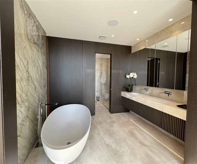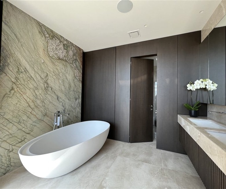 The interiors of this upscale residence are constructed with special care and attention, using premium quality materials, including marble floors, and finished to the highest of standards, utilizing every corner to maximize both space and comfort. The entire home spans 290 square meters, with generous proportions creating an environment of ultimate well-being and luxury.