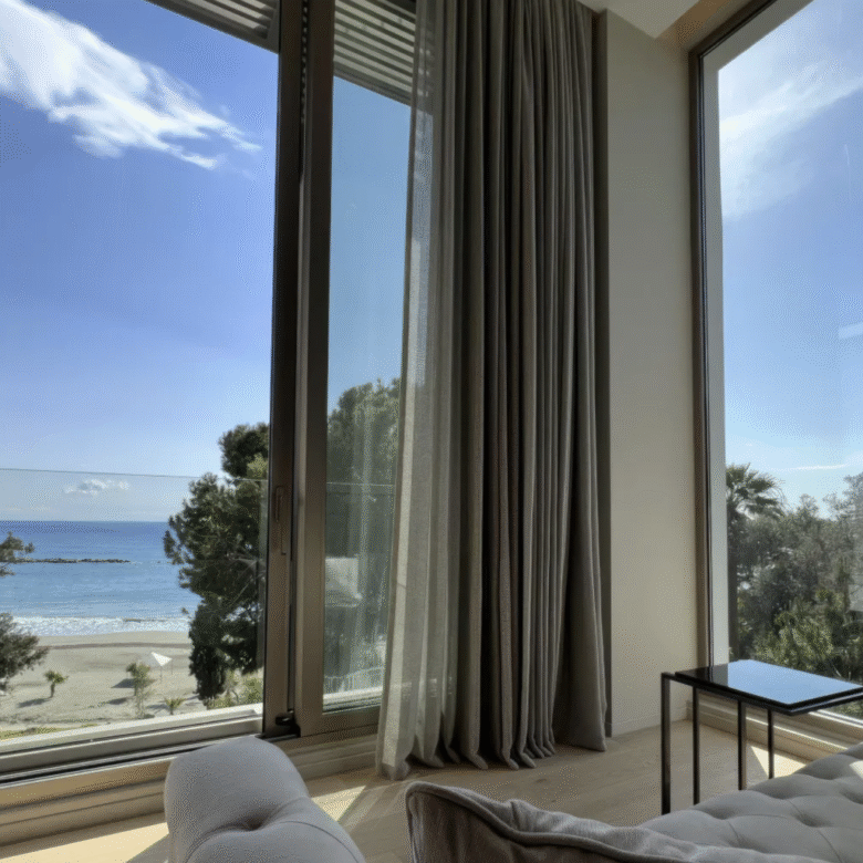 This exquisite four bedroom villa is located in one of Limassol’s most prestigious locations, near the deluxe five-star Four Seasons Hotel. Residents of this beachside villa will truly benefit from the exclusivity of its location. As you step outside to the lush greenery of grass and pine trees, the sandy shore of one of Limassol’s award-winning Blue Flag beaches is just a few steps away. This unique location creates a mini oasis of luxury where you can enjoy the relaxed vibes of a laidback Mediterranean lifestyle, with the added advantage of close proximity to one of Limassol’s most high-end hotels. For added privacy, the villa is completely hidden from the main road and guarded by a 2-meter front gate, making it the perfect refuge.