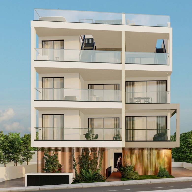 This project is located in the Metropolis Mall area of Larnaca, close to all amenities, including schools, cafes, supermarkets, and shops, with easy access to the highways. It is a 3-storey building featuring a minimalist design, high-quality materials, and premium, high-end finishes.
