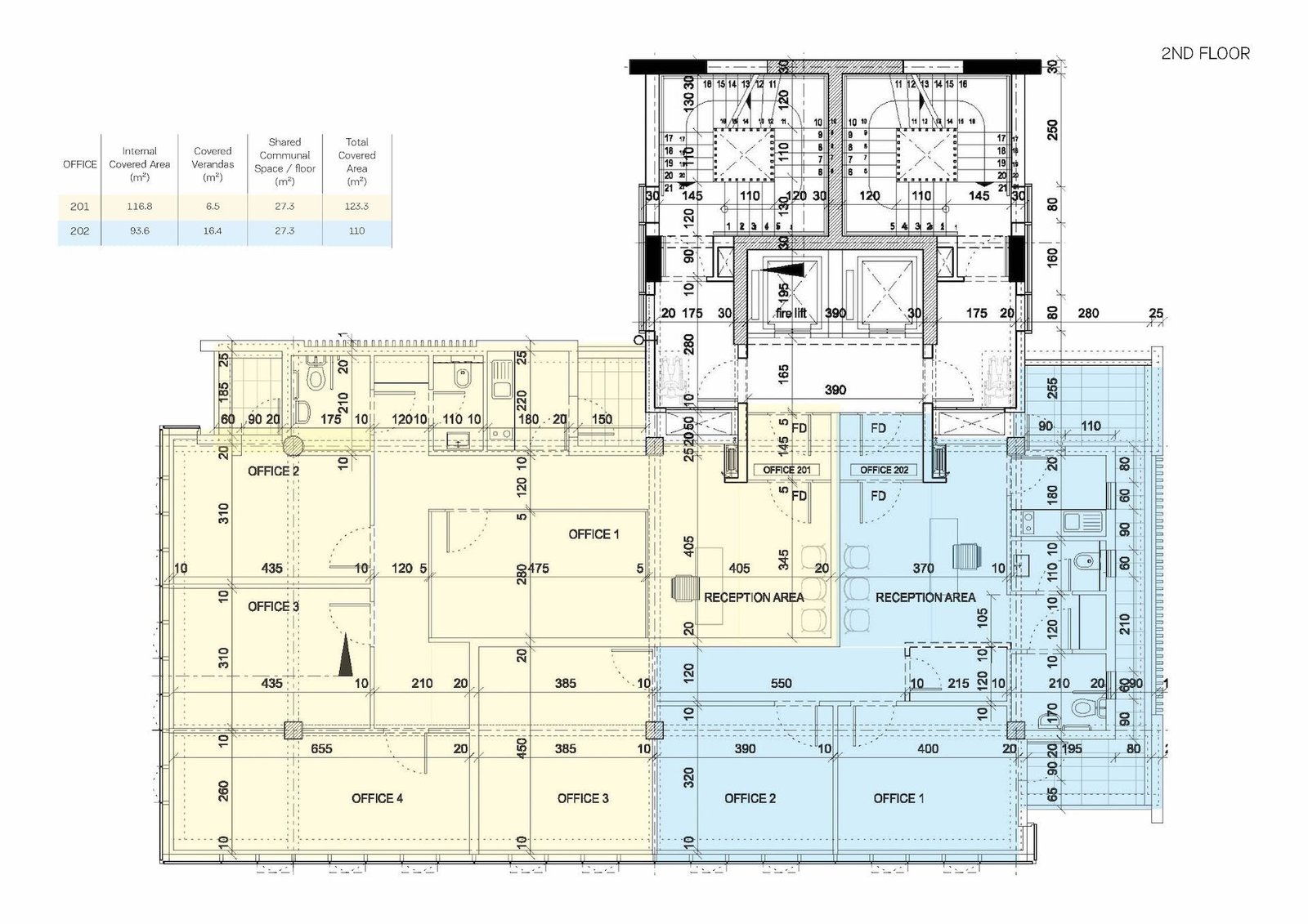 Office 201: Internal area: 117 m², Covered veranda: 7 m² – Price: € 613,200 + VAT