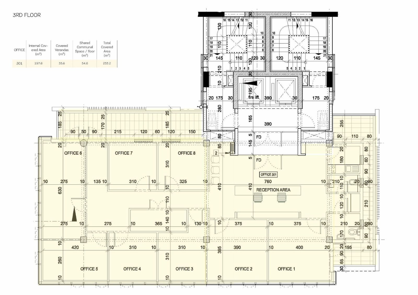 Office 301: Internal area: 198 m², Covered veranda: 36 m² – Price: € 1,089,369 + VAT