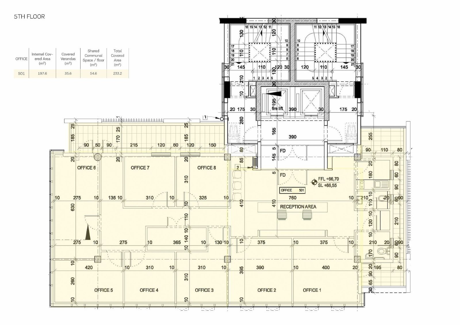 Office 501: Internal area: 198 m², Covered veranda: 36 m² – Price: € 1,178,289 + VAT