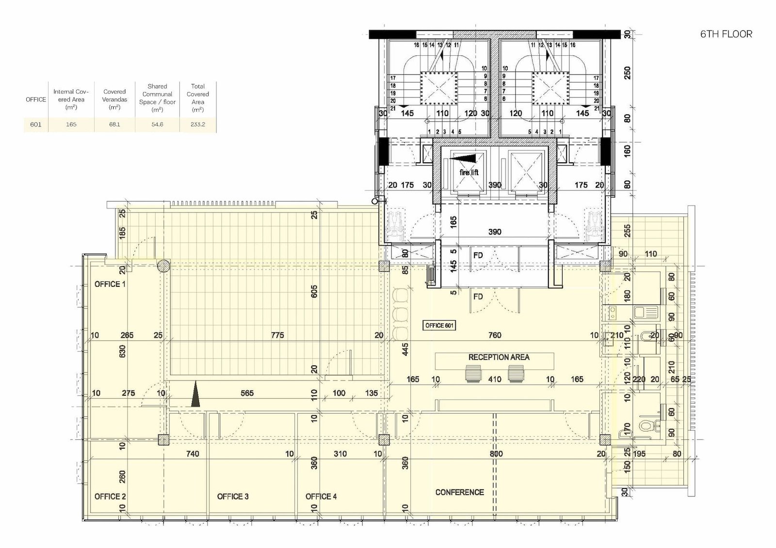 Office 601: Internal area: 165 m², Covered veranda: 68 m² – Price: € 1,178,289 + VAT