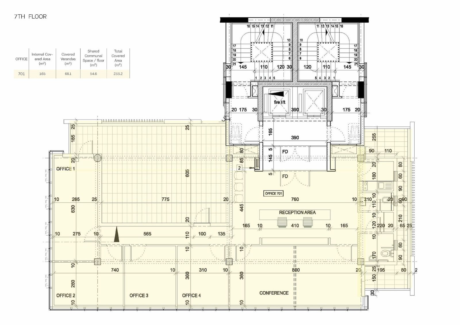 Office 701: Internal area: 165 m², Covered veranda: 68 m² – Price: € 1,043,790 + VAT