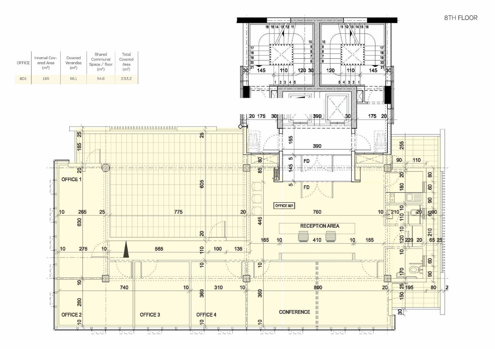 Office 801: Internal area: 165 m², Covered veranda: 68 m² – Price: € 1,075,100 + VAT