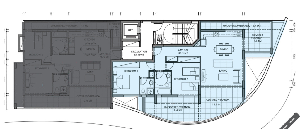 This project is ideally located just 1,300 meters from the New Marina and Port in Larnaca offering convenient access to coastal attractions and amenities. It consist of two separate buildings, each featuring a selection of 1-bedroom and 2-bedroom apartments designed for modern living. The development is situated next to the Era Department Store, providing residents with easy access to shopping, dining, and entertainment options.