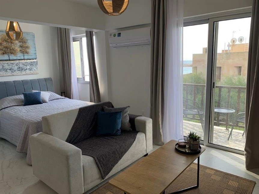 This cozy seafront studio is situated in the Zygi area. It has easy access to the highway and amenities. Zygi lies between the towns of Larnaca, Nicosia, and Limassol.