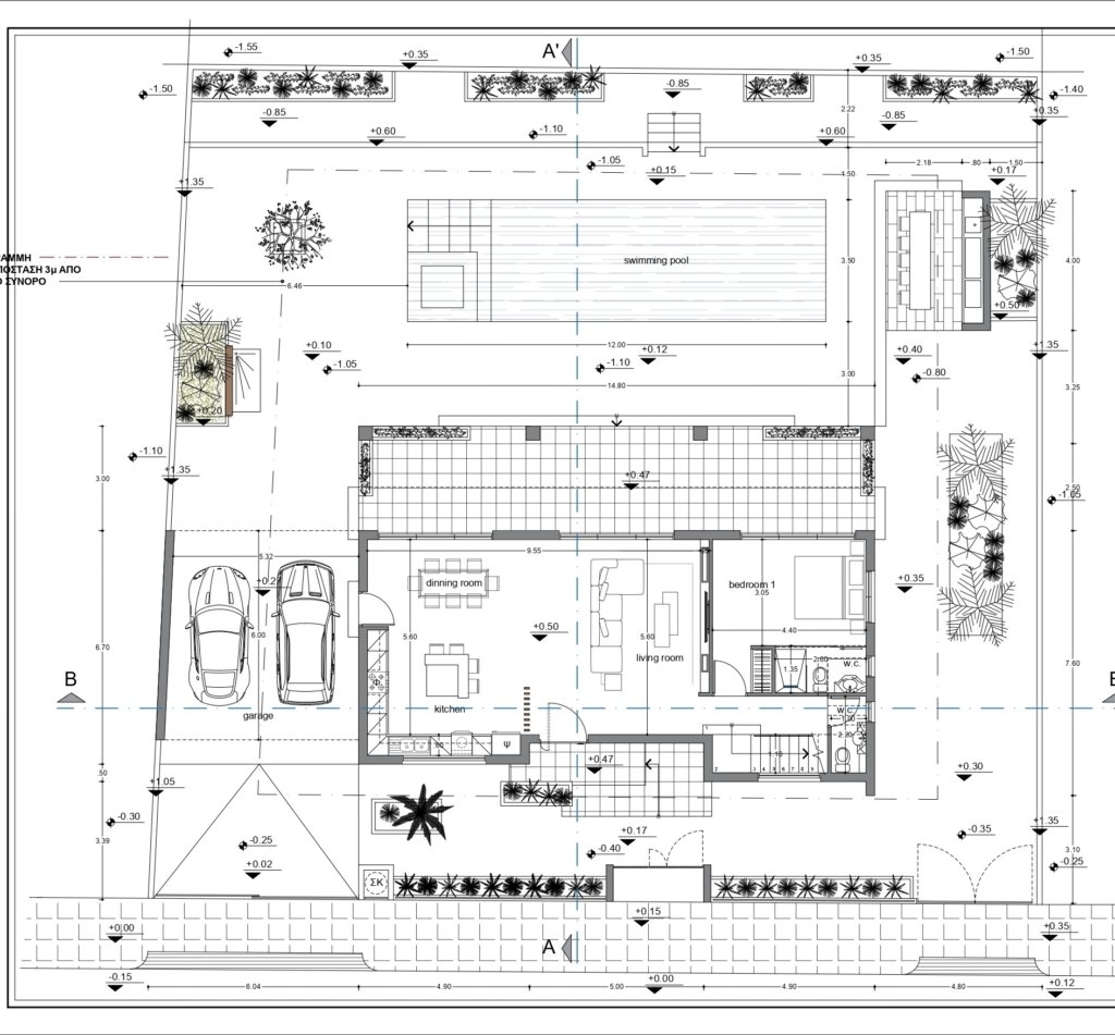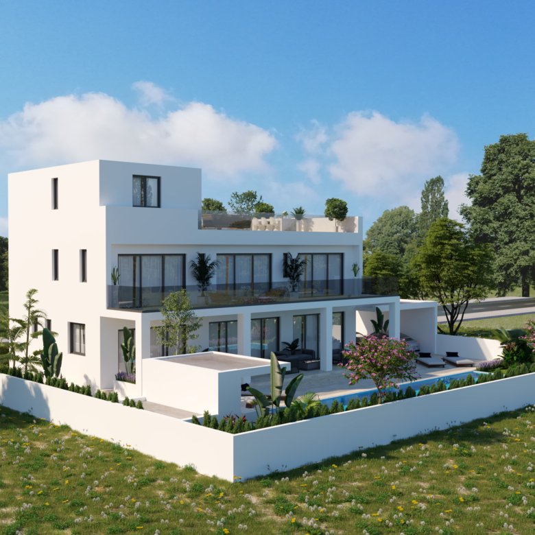 This 5-bedroom villa is located in the heart of Oroklini, Larnaca, within walking distance to local amenities. The open-plan kitchen features a stylish island that flows seamlessly into the dining area and spacious living room. The property offers airy verandas, an inviting BBQ area, an outdoor shower, and a magnificent 13-meter swimming pool.