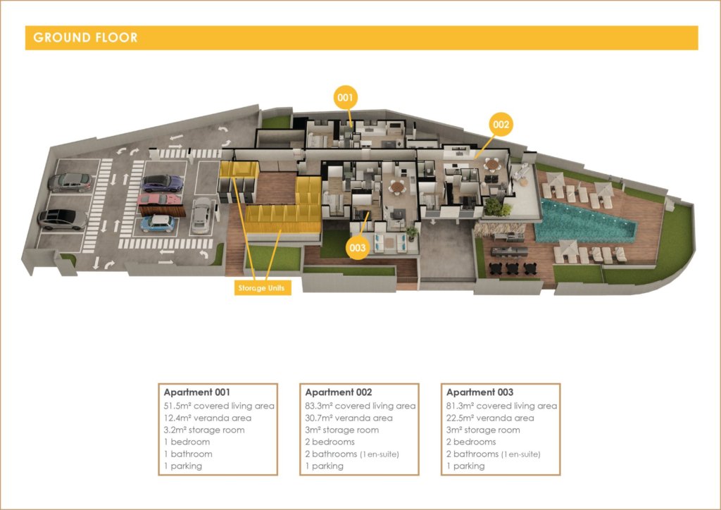 This modern project is located in Oroklini, Larnaca, just minutes from the sea and conveniently close to the city. Inside, apartments feature clean lines, natural materials, and floor-to-ceiling glass. The complex offers premium amenities including a gym, a communal swimming pool, a lounge, and a BBQ area.