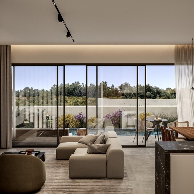 This contemporary house is located in a gated complex in Livadia, Larnaca, with easy access to shopping and dining. The property features modern design and high-end finishes, including high-standard kitchen cabinets and wardrobes. The house consists of 3 bedrooms, 3 bathrooms, and an open-plan living and dining area, with a private garden.