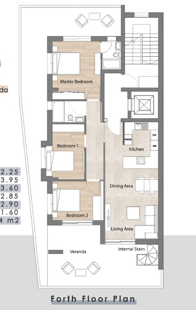 This residential project is located in the city center of Larnaca, close to supermarkets, malls, and private schools. It is just a 5-minute drive from Finikoudes Beach. The project features a modern architectural design and consists of 4 floors, offering a selection of 1-bedroom and 2-bedroom apartments.