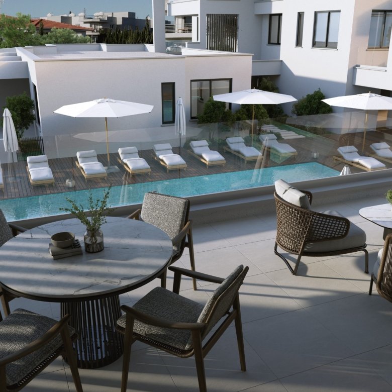 This two bedroom modern apartment is situated in the beautiful development which is located in the lovely residential Livadia area in Larnaca, nestled near the dazzling blue flag beaches.