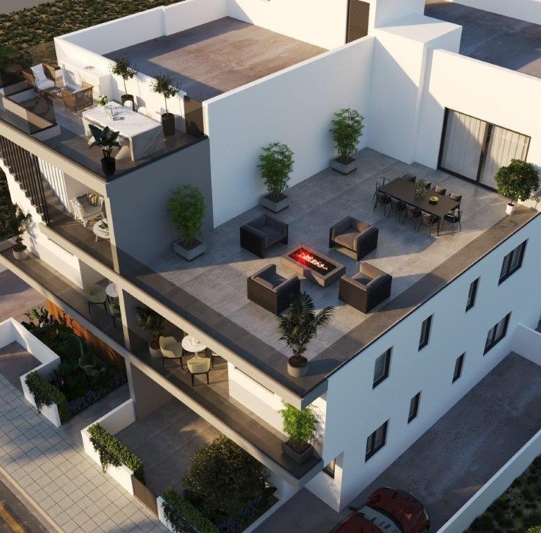 This modern project is located in Kiti village, Larnaca, just a short distance from the vibrant city of Larnaca and all its amenities and facilities. The apartment features 2 bedrooms, 2 bathrooms, a covered veranda and a roof garden.