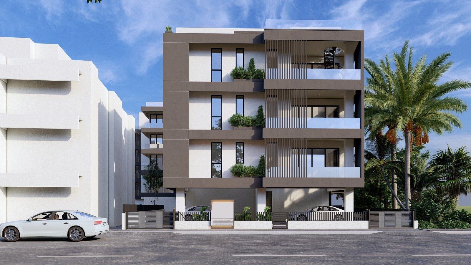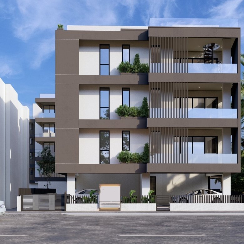 This modern project is located in Livadia, Larnaca, close to all amenities. The apartment consists of 2 bedrooms, 2 bathrooms, a covered veranda and a roof garden. The gated complex features a communal swimming pool.
