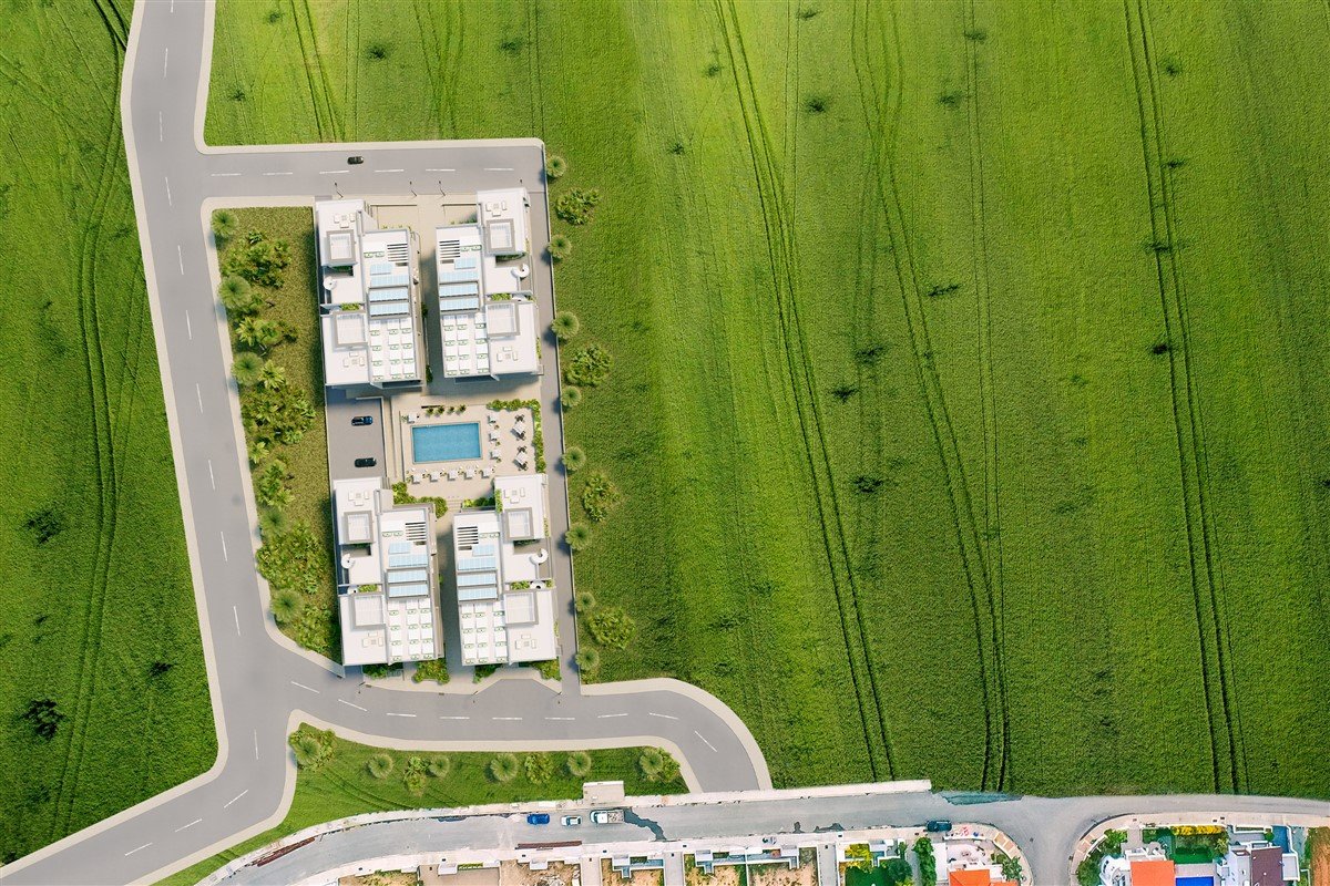 The project is located in Livadia, Larnaca, features an open-plan layout combining the living room and dining area. The complex includes an outdoor pool, fully equipped gym, sauna room, steam-bath room, and landscaped garden areas. Lobby areas provide a welcoming entrance. The apartments will be constructed using high-quality materials.