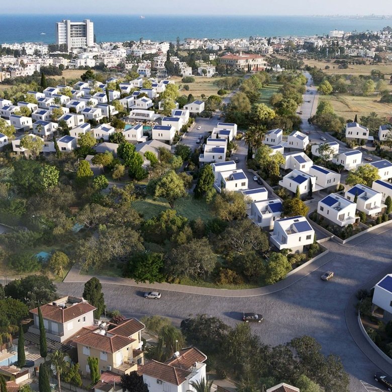This exclusive development of 89 villas is nestled in the picturesque area of Oroklini, Larnaca. Designed as a gated community, it features beautifully landscaped gardens and breathtaking views. Located just 300 meters from pristine sandy beaches, each villa boasts a thoughtfully designed, minimalistic interior.