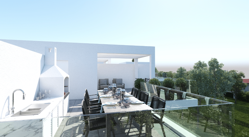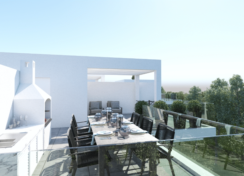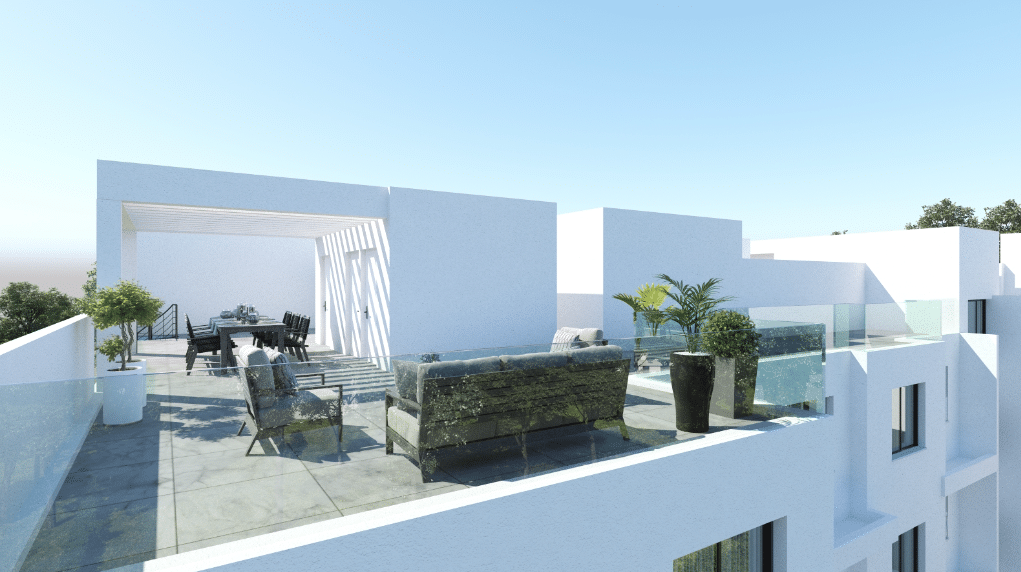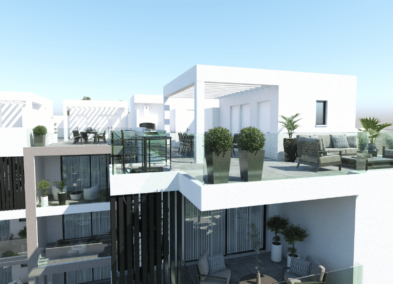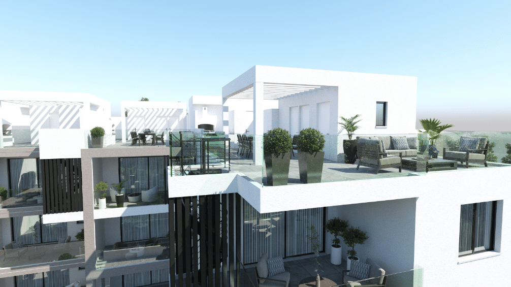 The two third floor apartments benefit from individual private and luxury roof-gardens with amazing views. The lovely residential neighbourhood is quiet and family orientated surrounded by large luxury houses and residential properties. The project is very near to schools, walking distance to Lidl Supermarket and the Metropolis Mall and with immediate access to highways to Nicosia, Limassol, Paphos.