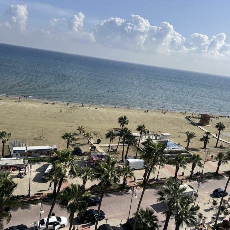 Luxury 2 bedrooms apartment for sale situated on the famous Finikoudes beach, in Larnaca. The apartment is located in a luxury block right on the seafront. On the inside, there is a spacious open-plan modern kitchen with a living room, two bedrooms, two balconies, and one bathroom. The apartment is situated on the top – 7th- floor and the balconies offer majestic views of the Mediterranean.