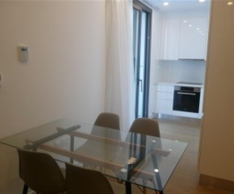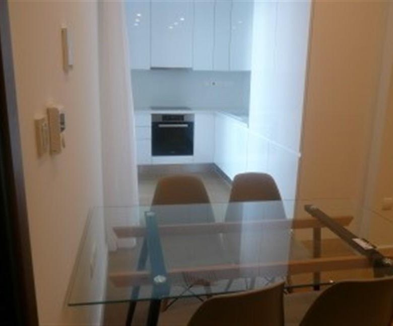 The apartment consists of 1 bedroom, a kitchen with a dining table, a living room with TV, a bathroom with toilet, and a veranda. It is fully furnished with high quality Italian furniture and electrical equipment. There are marble floorings and tiles in bathrooms.