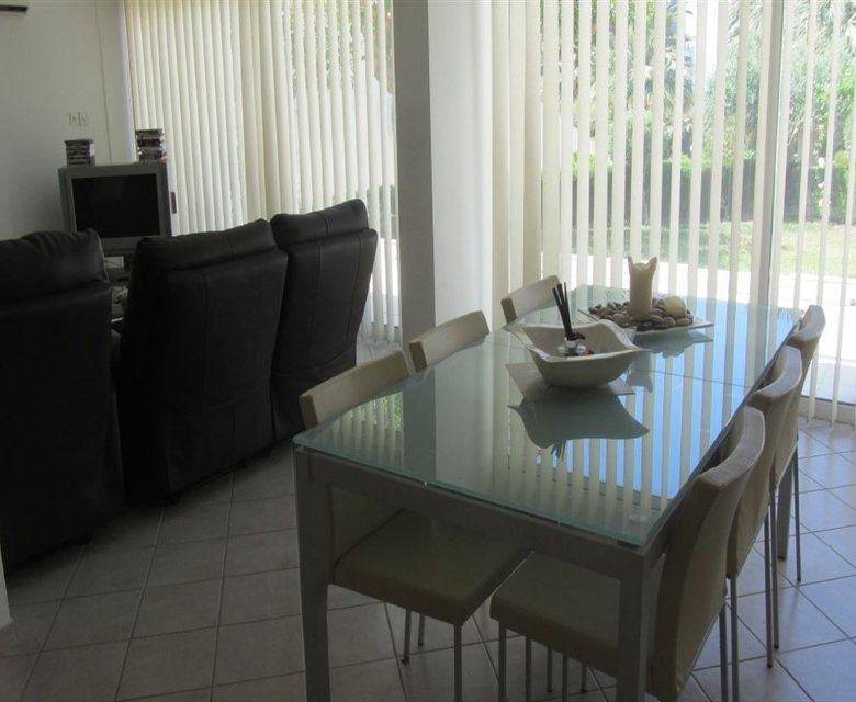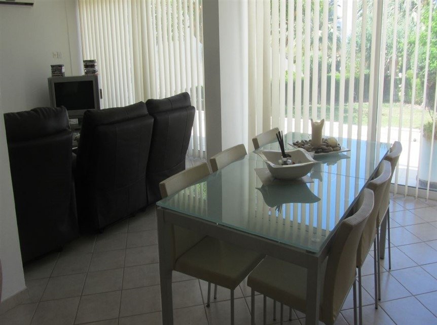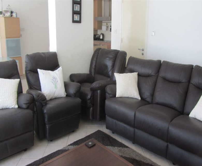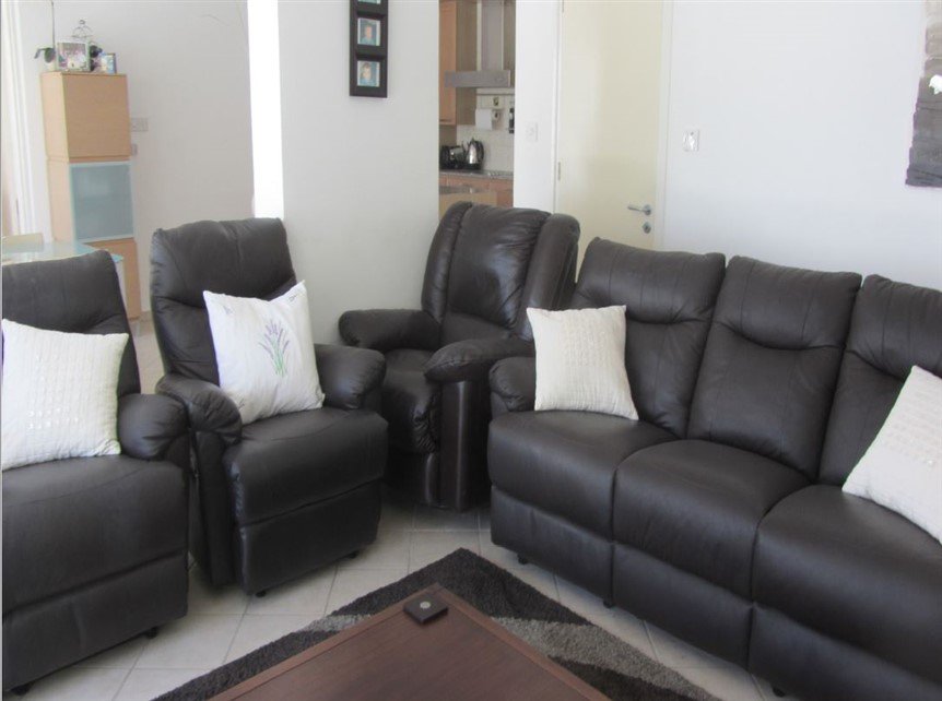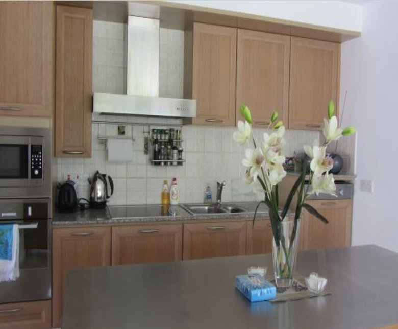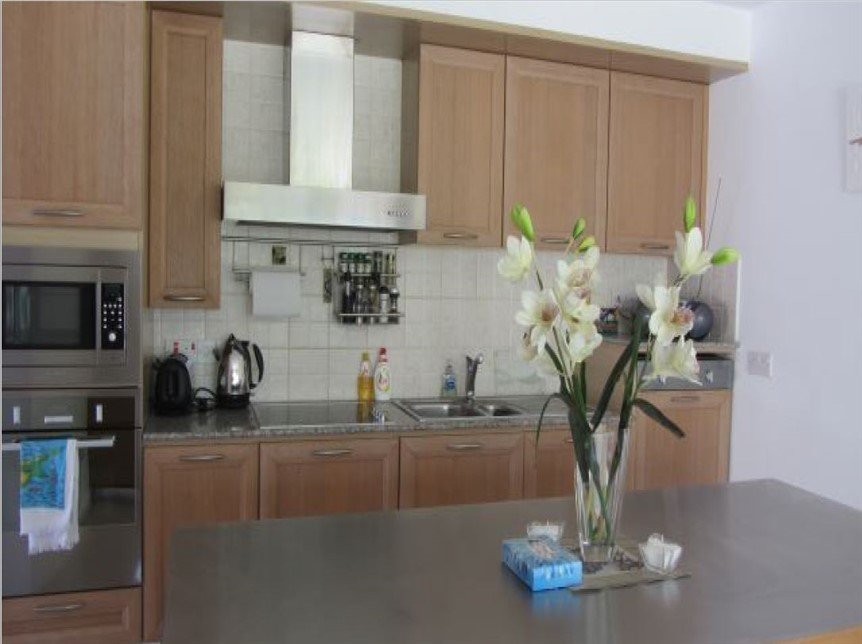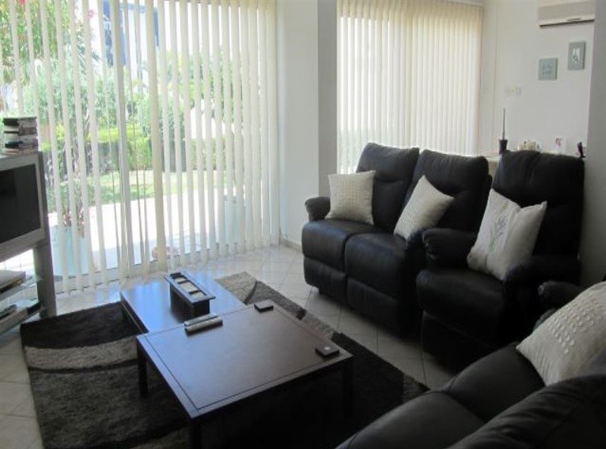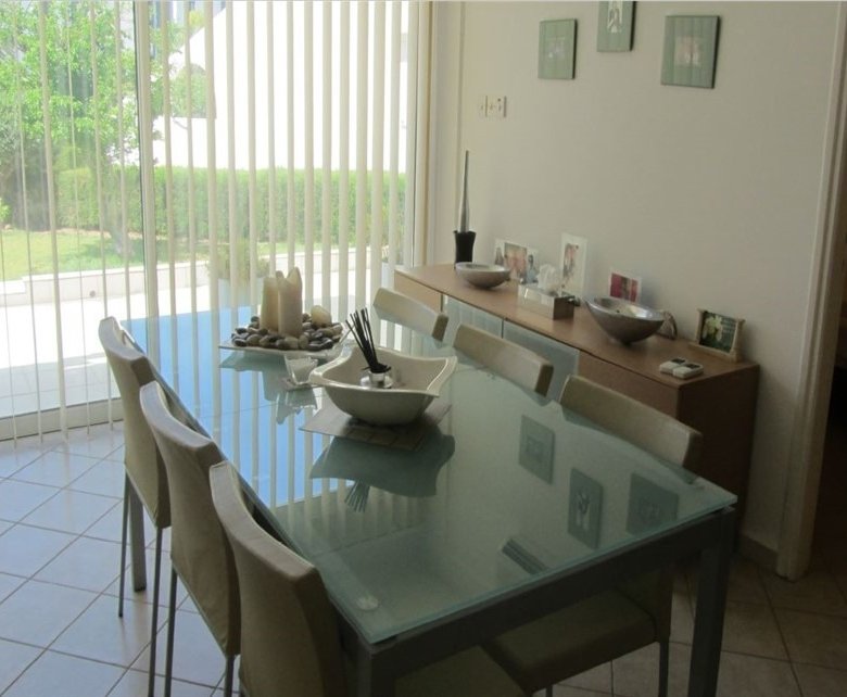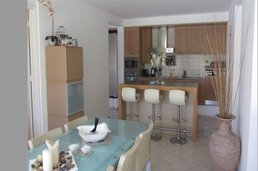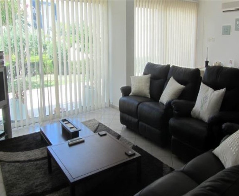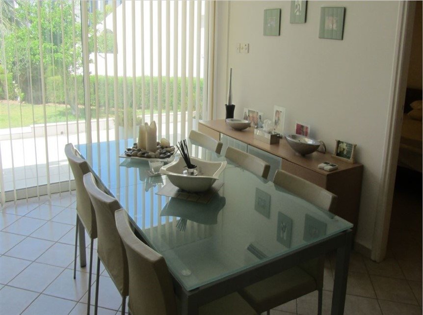 This three-bedroom ground-floor apartment is located in the prestigious Parekklisia area, east of Limassol.