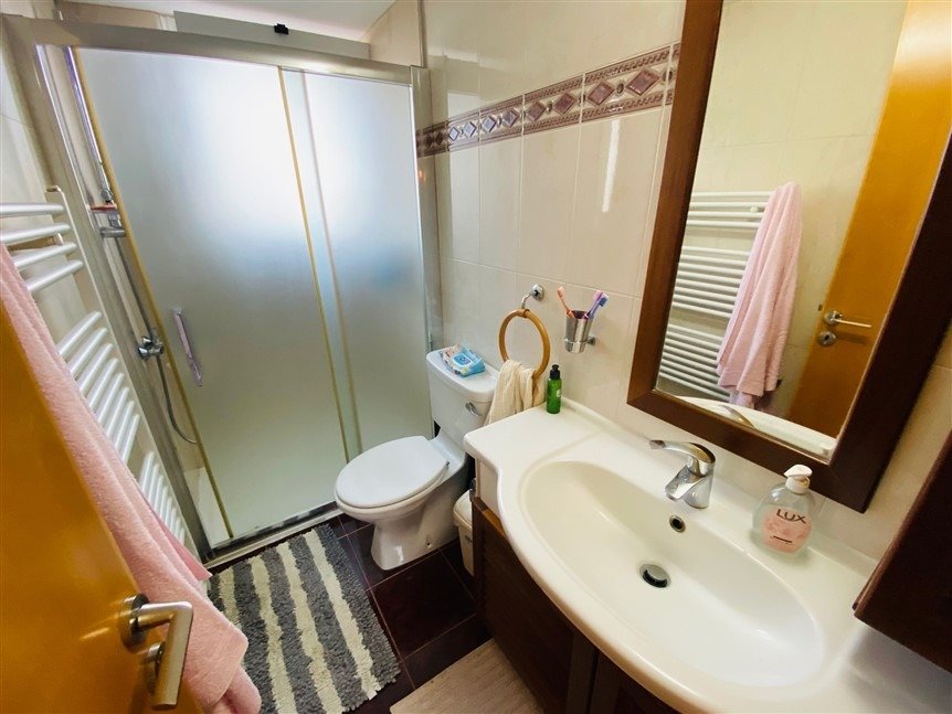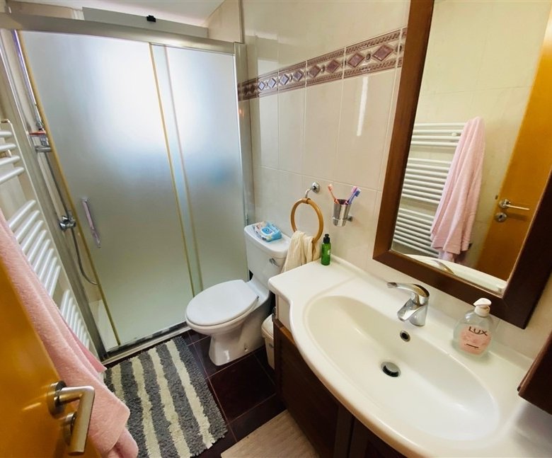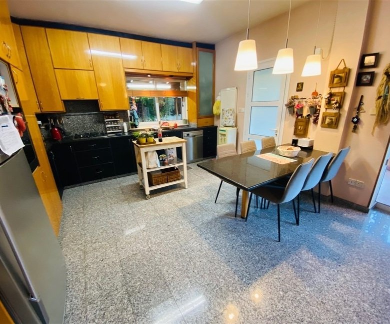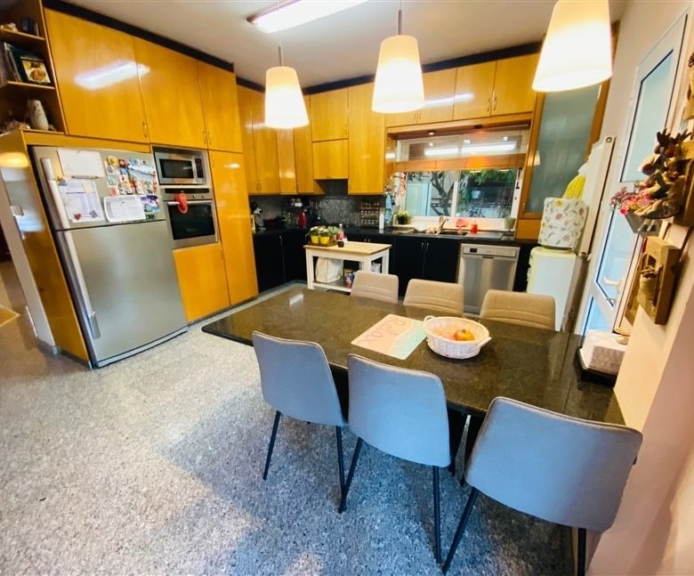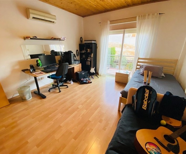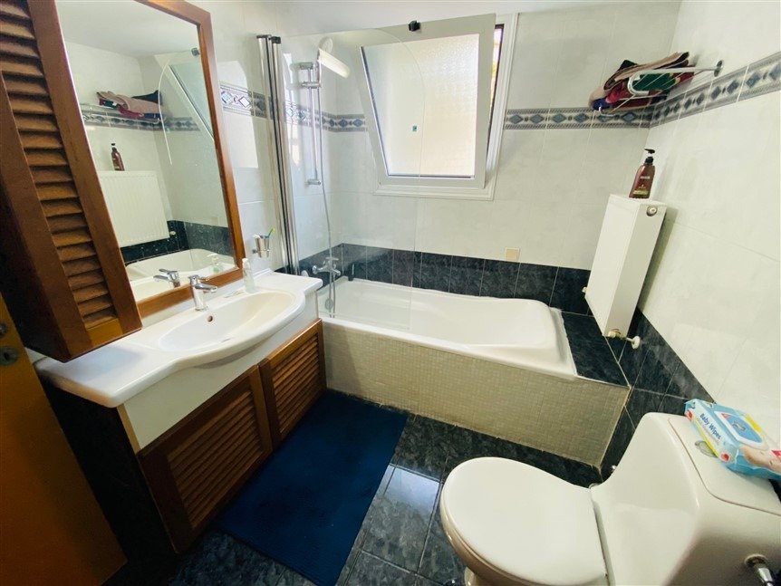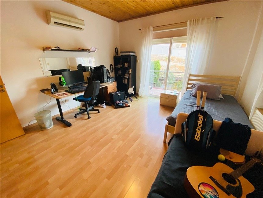 It consists of two floors: on the ground floor there is an entrance area, an open-plan kitchen connected with a sitting and dining area, a guest WC and a covered veranda with a garden view. On the first floor, there are three bedrooms (master bedroom en-suite with shower and walk-in wardrobes), a covered balcony, a family bathroom, small laundry, and uncovered verandas. Upstairs there is a spacious attic of 27 m2 which can be used as an office/playroom.