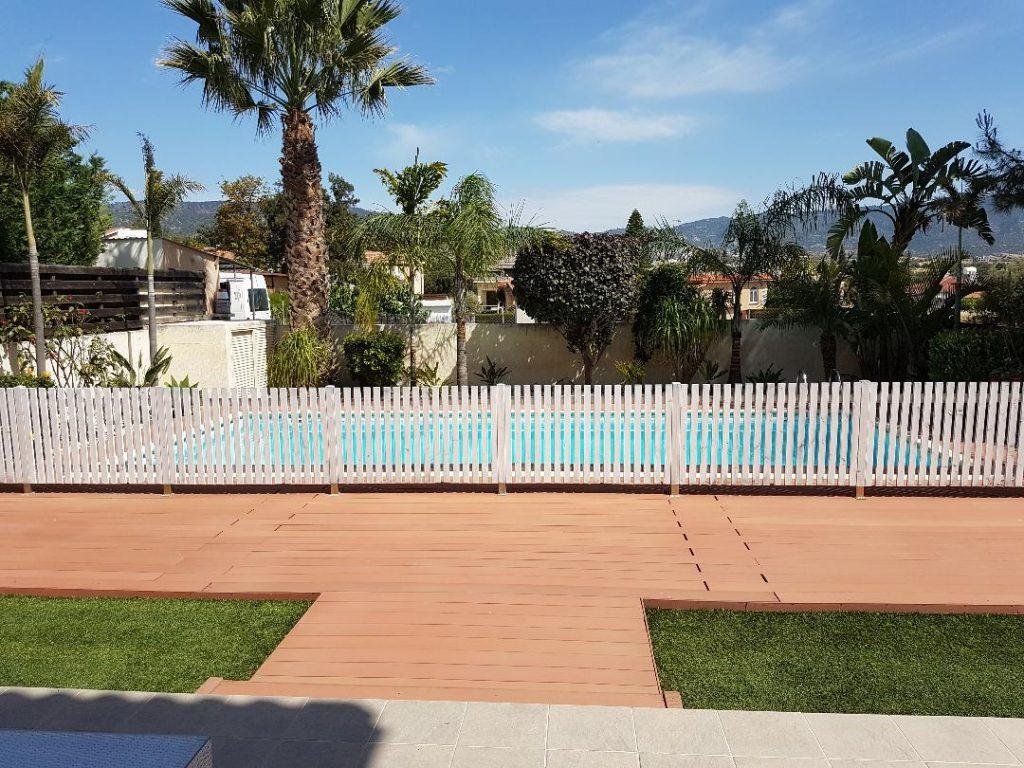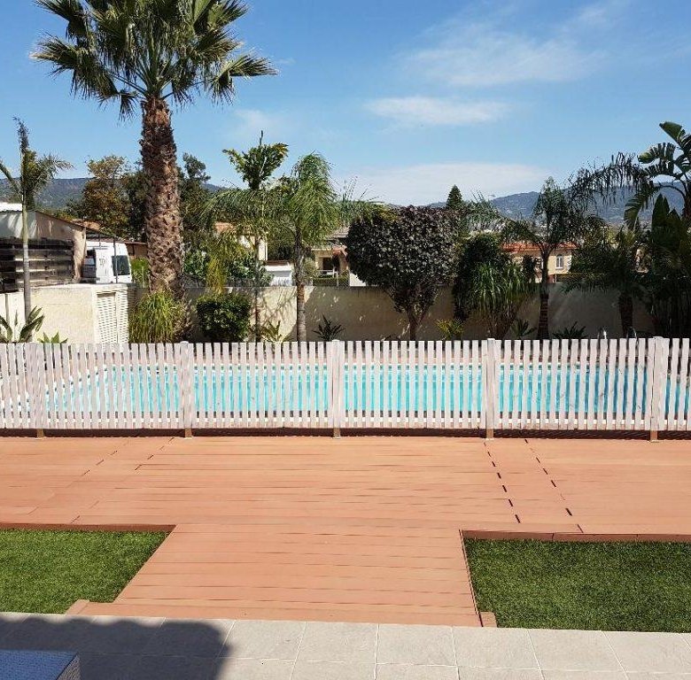 This spacious 3 bedroom house comprises a kitchen with a sitting area, a living room with a dining room, three bedrooms, the master bedroom with an en-suite closet and shower, a family bathroom and one guest toilet. All areas are large and spacious. There is covered parking with an electrical gate and another uncovered parking space. The swimming pool is 9 meters long and 4 meters wide with an external shower surrounded by a synthetic deck and a tropical garden connected with the automatic water system. The rear veranda is covered with electrical shade awning and the garden area provides artificial grass.