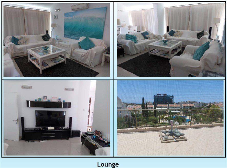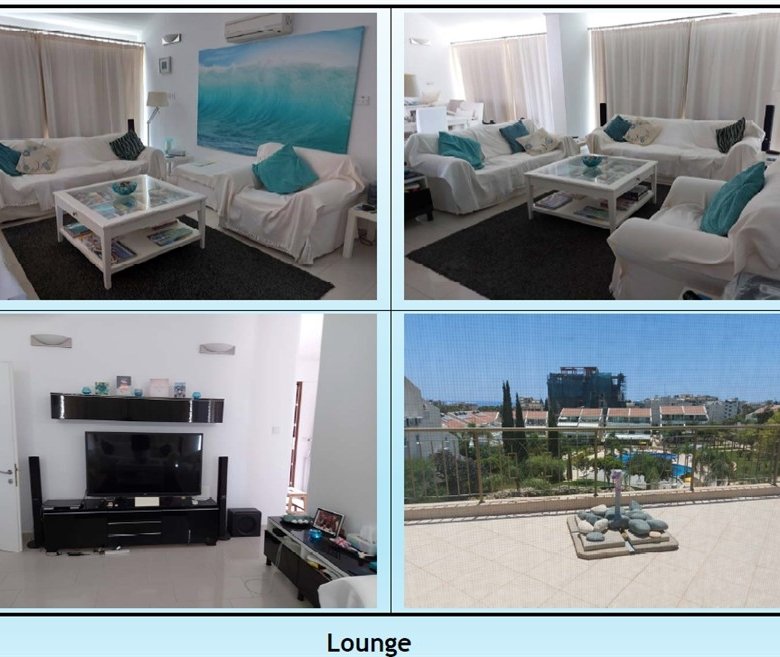The penthouse comprises of 2 double and 1 single rooms with fitted wardrobes, an open plan lounge and dining room leading out to the veranda overlooking the common swimming pool and the garden. It is fully equipped with electrical appliances and fully furnished.
