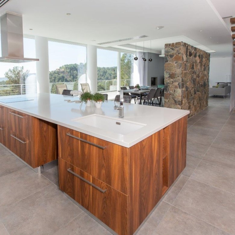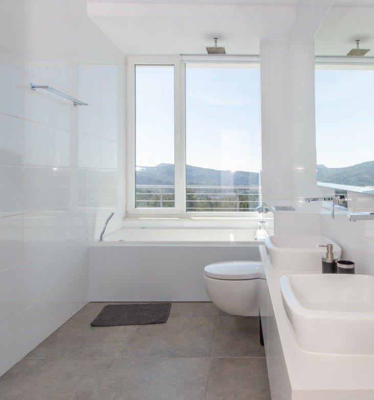 This well-built with the highest standard 4 bedroom house has the form of a minimalistic structure placed within a privileged plot of land at the top of a hill within the forest’s natural landscape. Designed by a leading architectural firm it enjoys contemporary architectural design aesthetics.