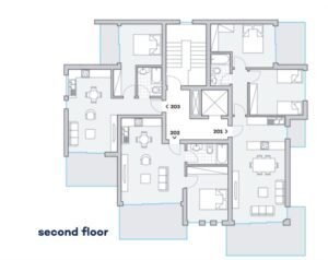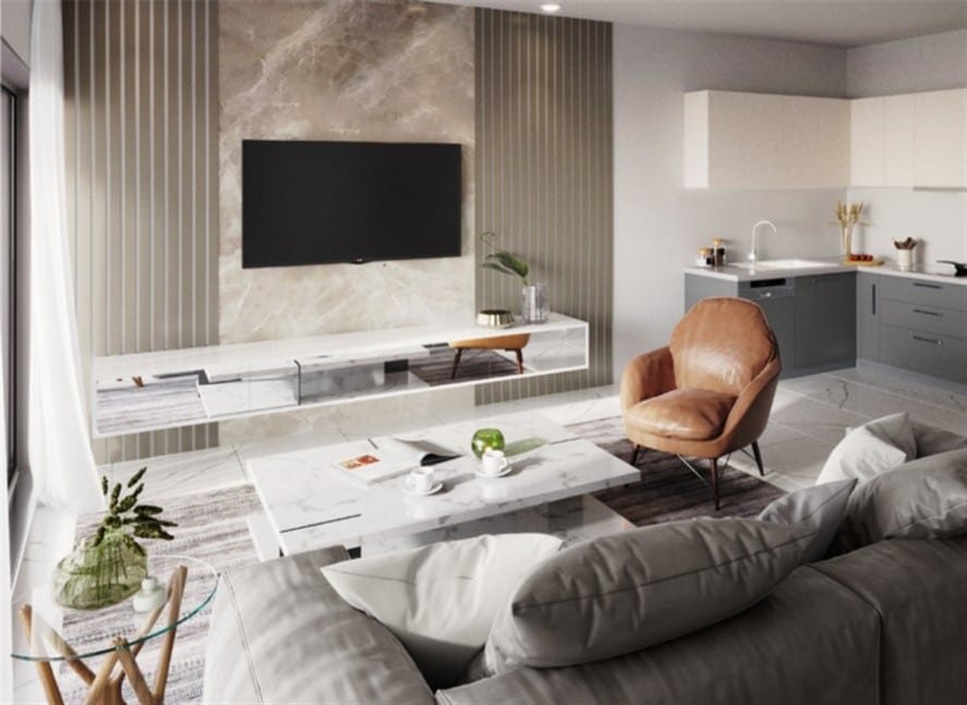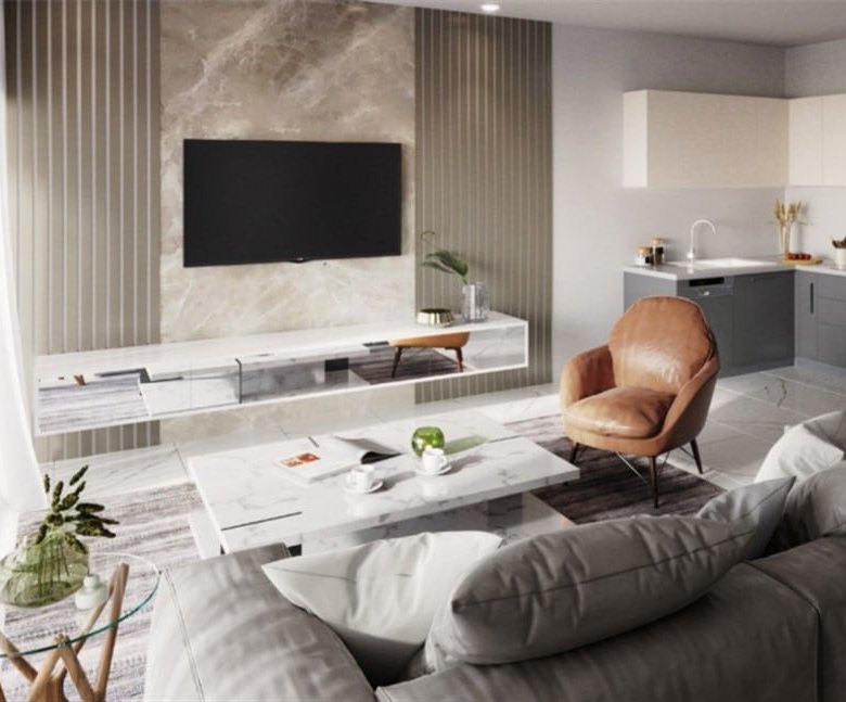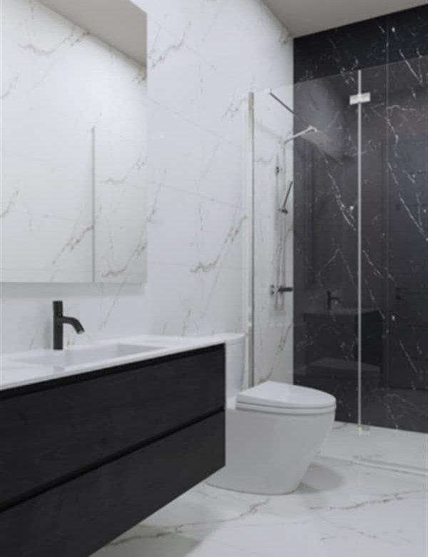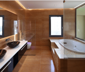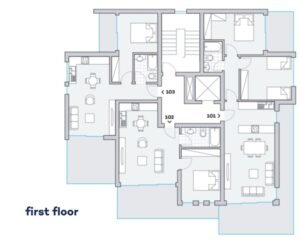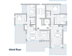On the ground floor, there is a big living area, a separate kitchen connected with a dining area, a guest toilet, access to the covered garage, and one room with an en-suite(which can be used as an office or maid’s room).