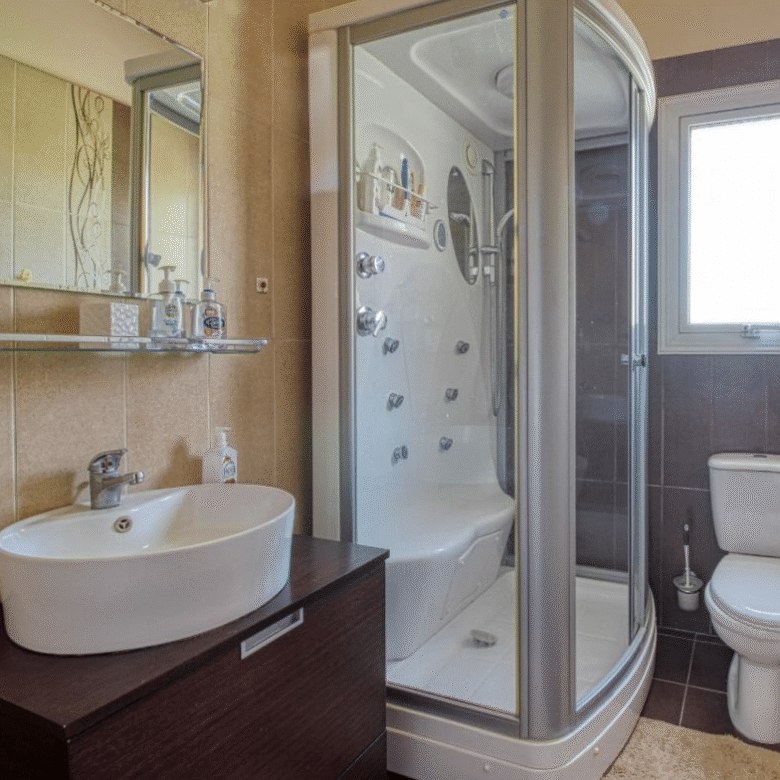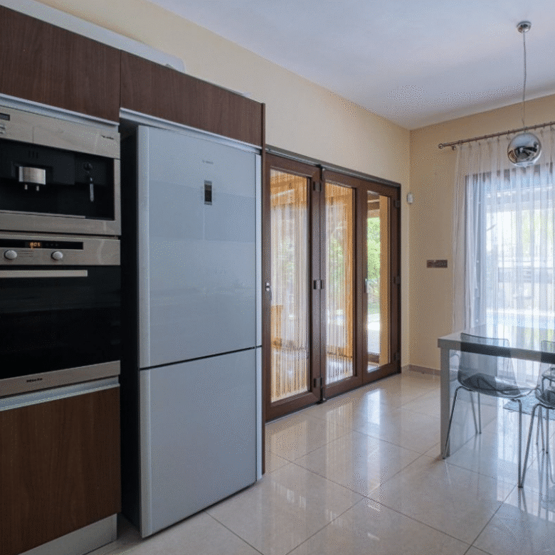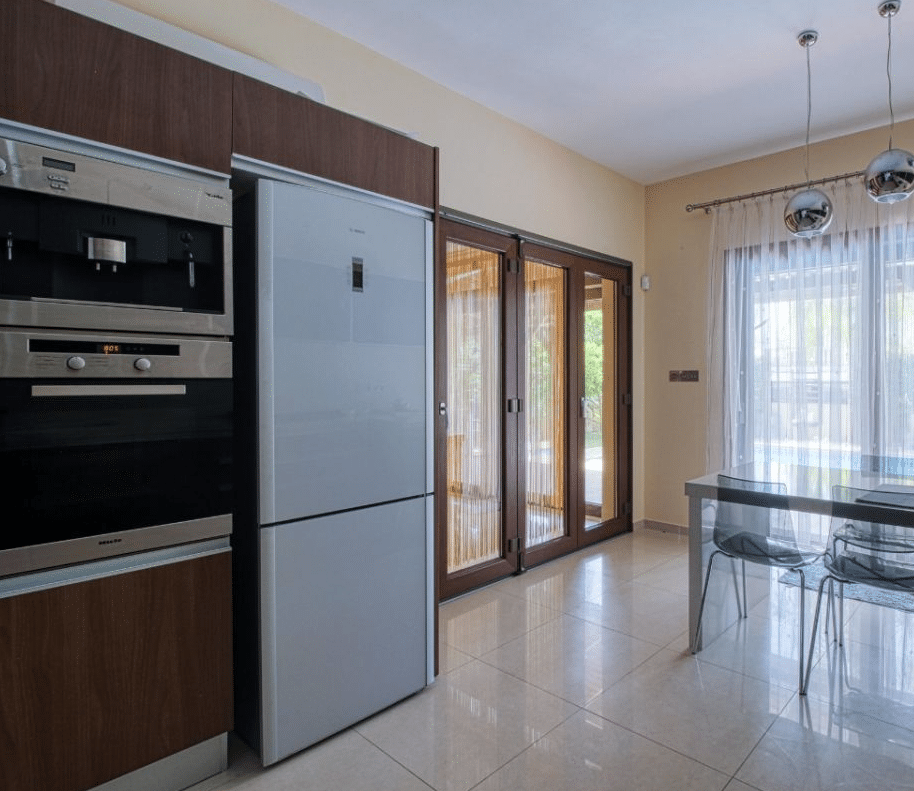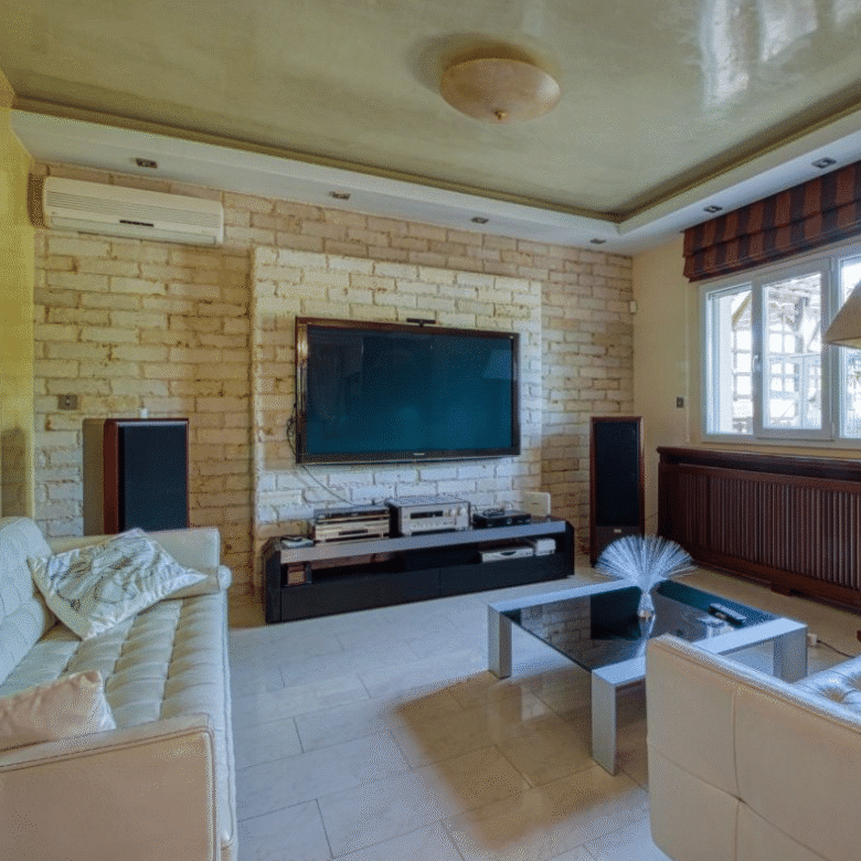 The property is a modern and cozy 4-bedroom villa, located in the Mouttagiaka area, within walking distance to the sea, close to all the amenities, and easy access to the highway.