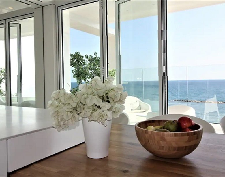 This designer 2-bedroom apartment is a dazzling home offering sublime beachside living, relaxing sea-views and perfect accommodation for holiday makers and business people alike. Renovated to the highest standards, it is gorgeously designed with a high end décor and brilliantly located directly on a sandy beach near the Four Seasons hotel in the upscale tourist area of Agios Tychon. Offering fully equipped kitchen area, open plan living space and covered balcony with outdoor furniture.