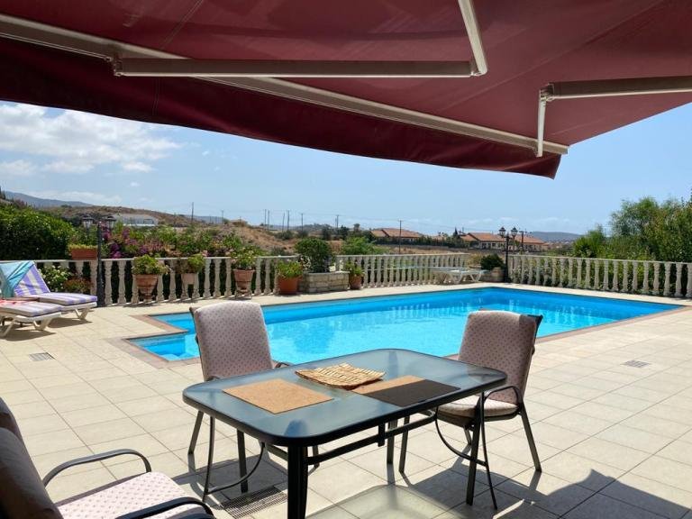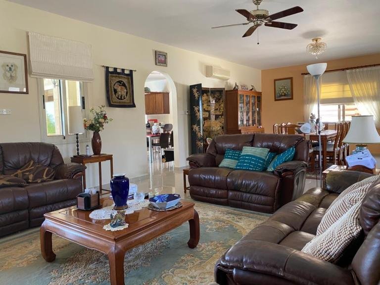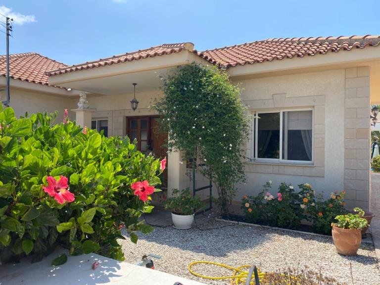 Located in Moni East of Limassol. This single level villa sits on a plot of 1042m2 and comprises a spacious living/dining room with a fireplace an archway leads to the kitchen/diner with double sliding doors going out to the parking and garden with pool. Of the 3 bedrooms the master has a shower en-suite and a family bathroom completes this property.