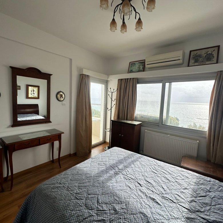 This one-bedroom apartment, situated in the Germasogeia area of Limassol, is ideally located on the beachfront, offering breathtaking direct sea views and convenient access to all amenities.