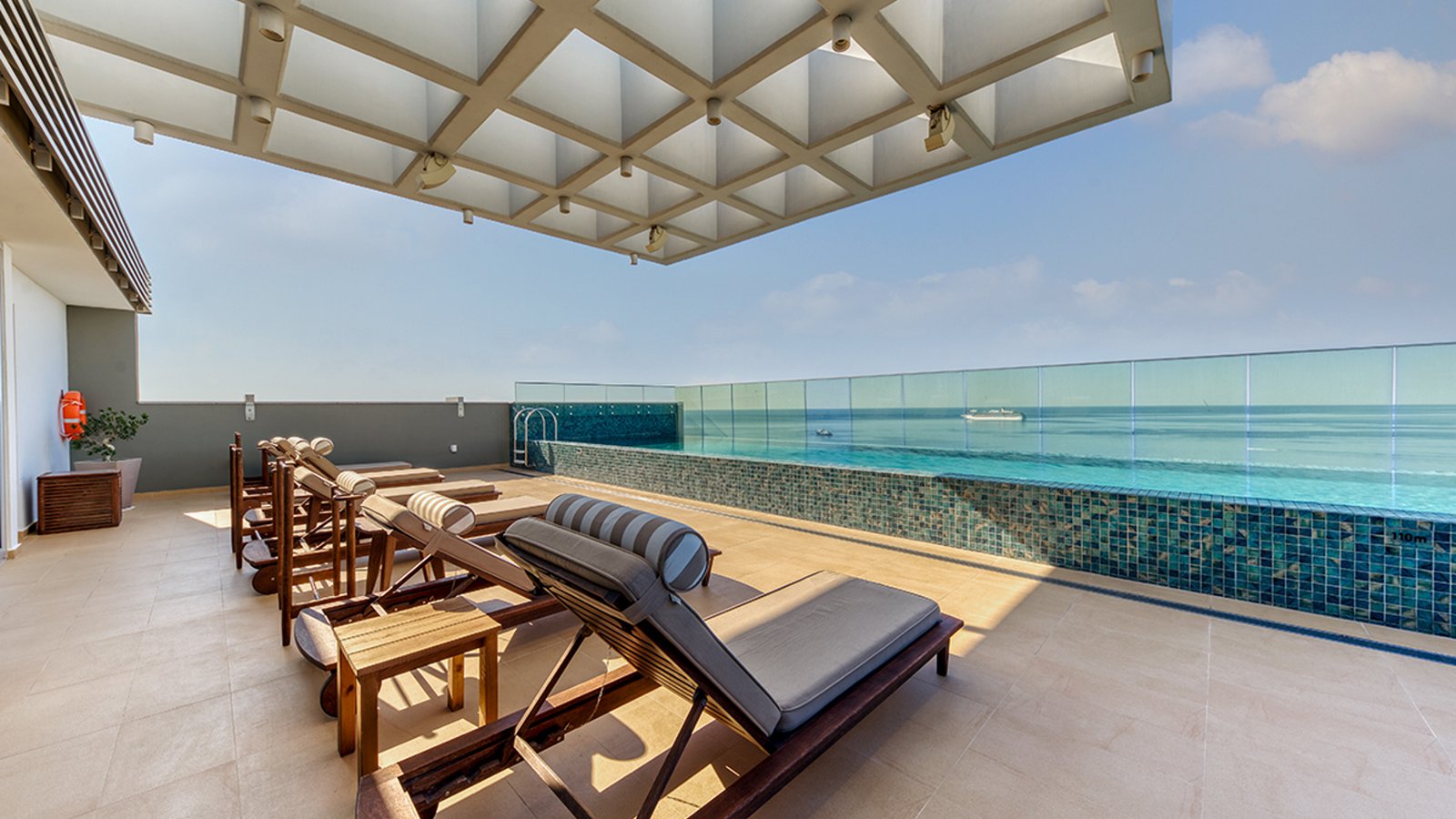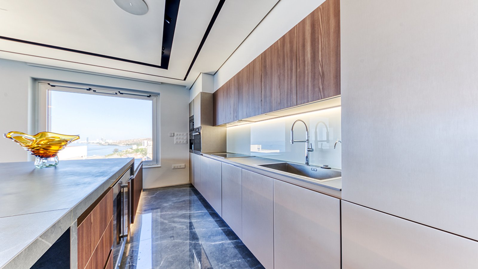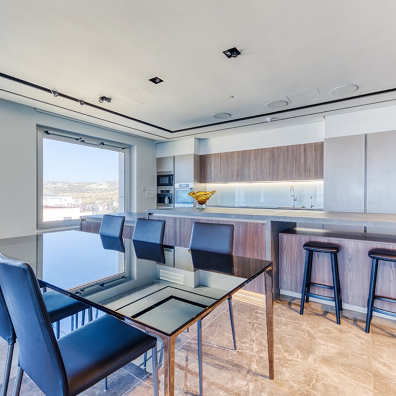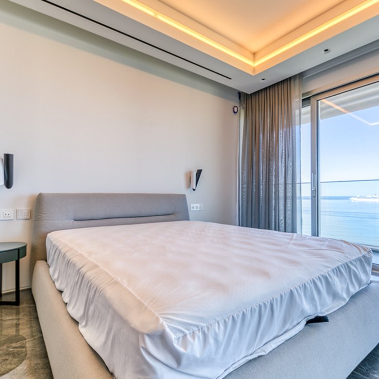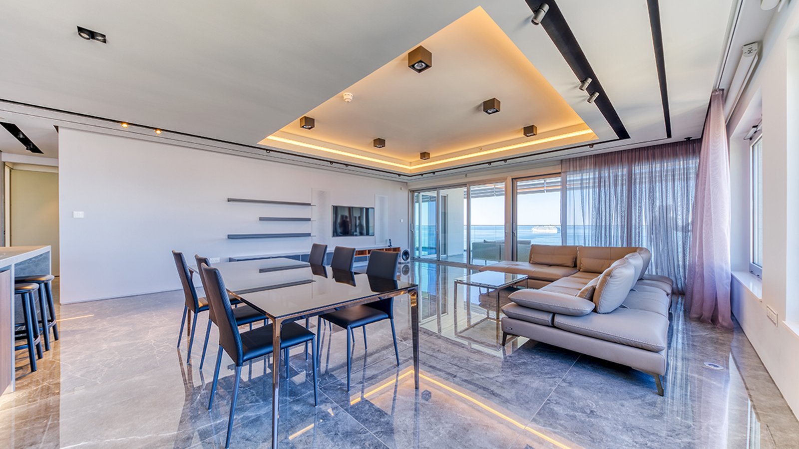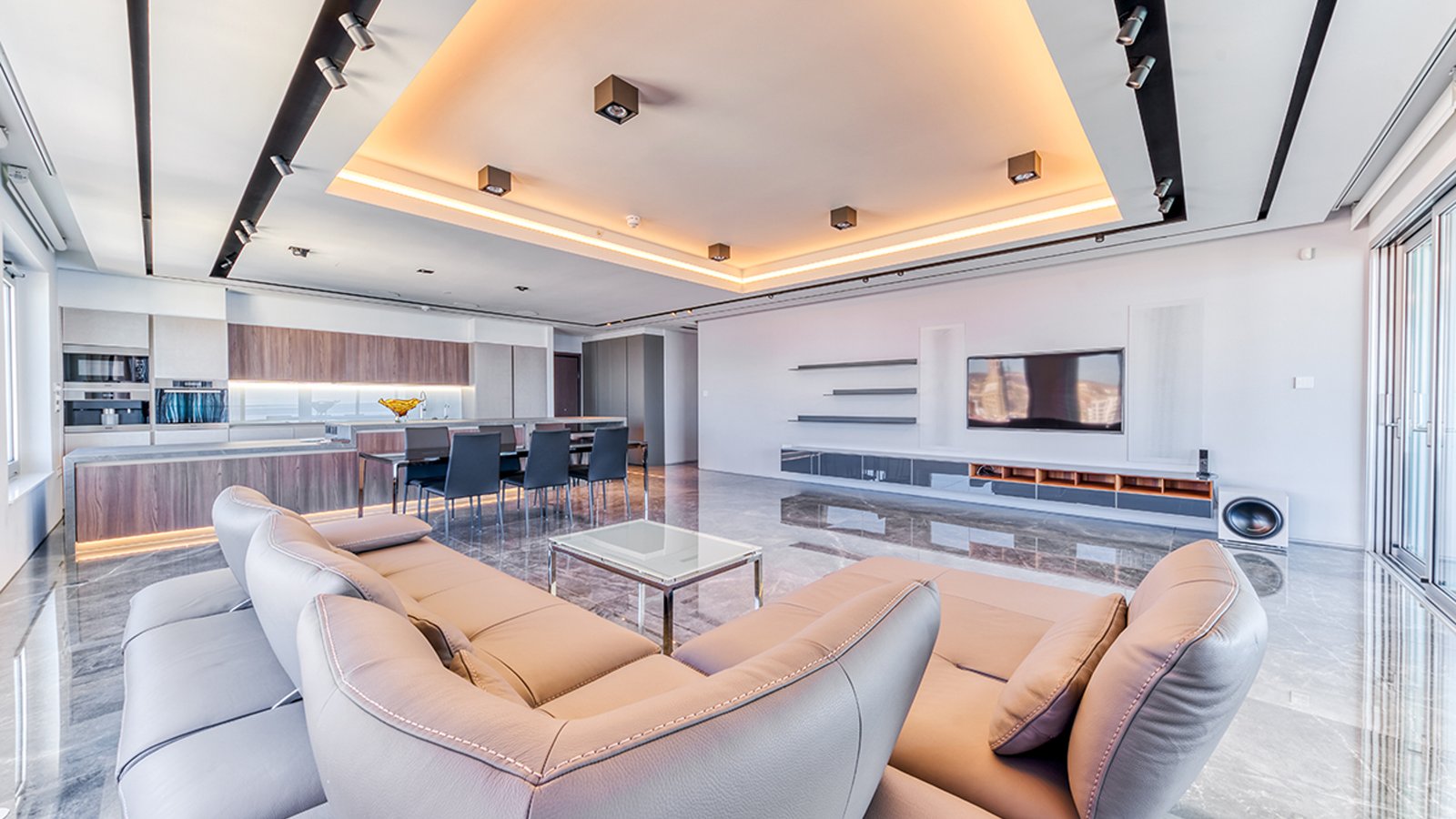 Situated on the 8th floor, the apartment boasts breathtaking panoramic views of the sea and Limassol Bay. Interiors feature a richly styled neutral color palette, creating a warm and inviting atmosphere. Exclusive amenities include a modern eco-gym, tennis court, spa and a communal swimming pool.