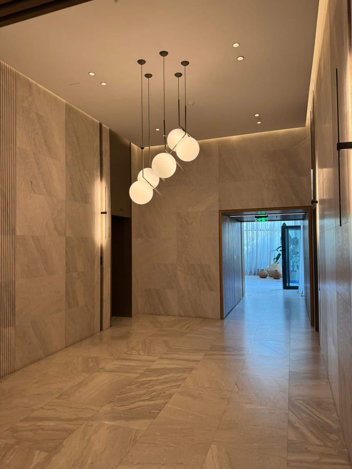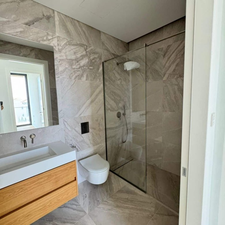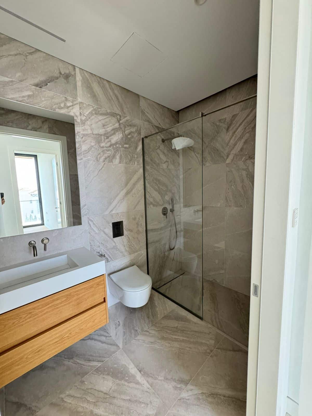 This luxurious 2-bedroom apartment, located in one of Limassol beachfront projects, offers stunning panoramic views. The complex provides top-tier amenities. The apartment features high-end finishes, such as marble floors and wall cladding in the bathrooms, semi-solid parquet flooring throughout the living areas, and high ceilings (3.15 m).