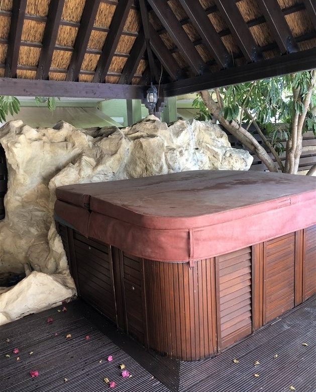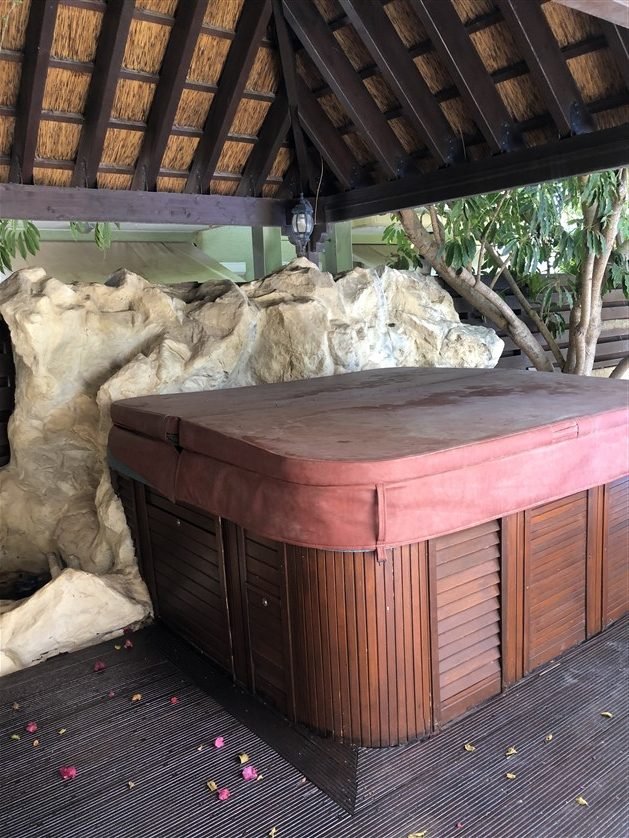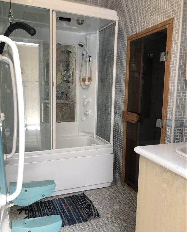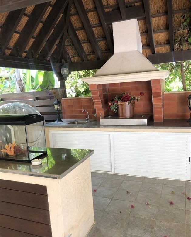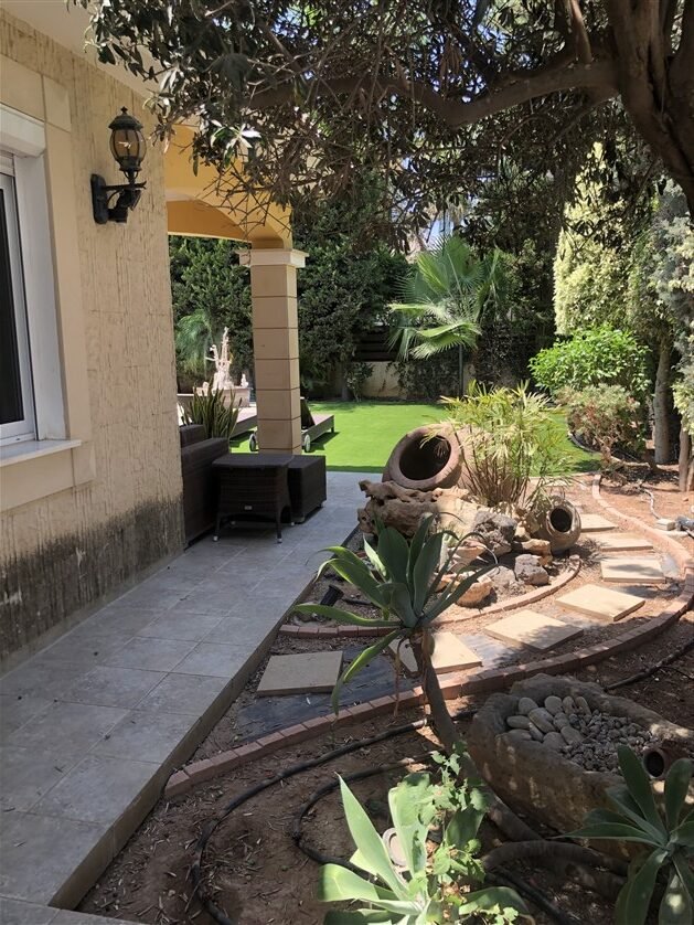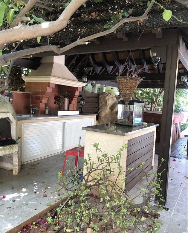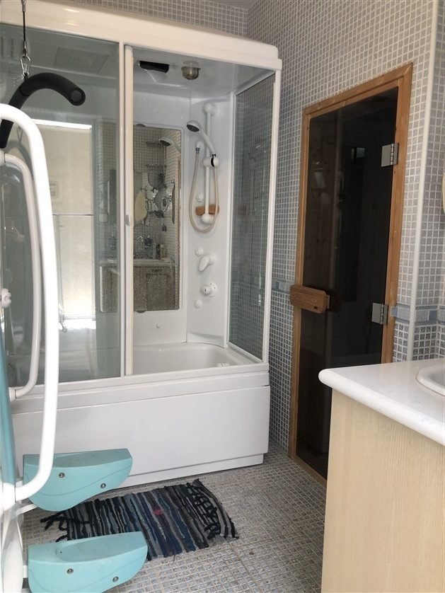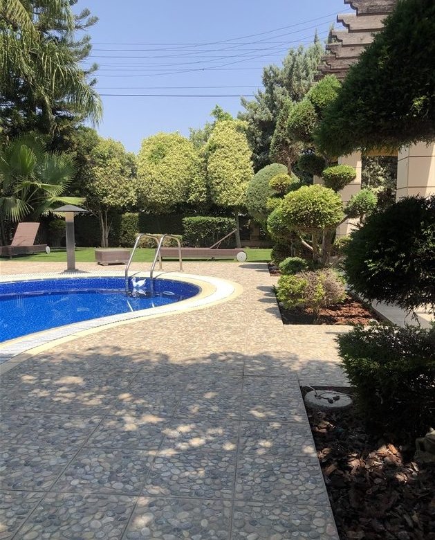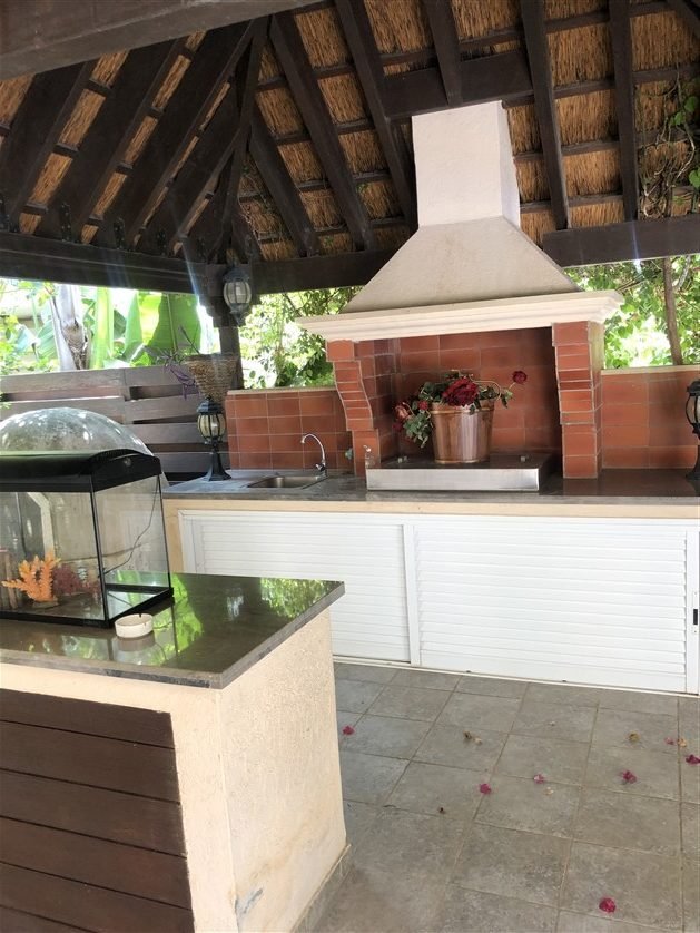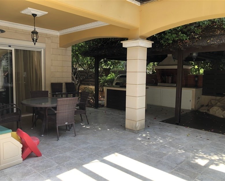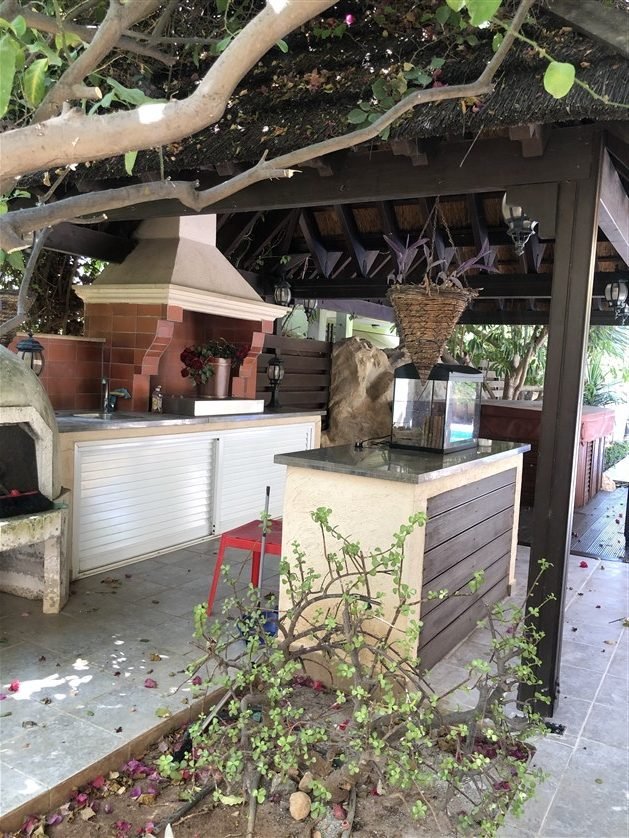 It has a covered BBQ area at the poolside surrounded by the green garden.  The property offers aa well wide variety of extra features: a sauna and jet shower room, a large ensuite bedroom with a walking wardrobe, and a decorative cornice on the ceiling in most rooms with hidden lights in the false ceilings and handmade paintings on the walls.