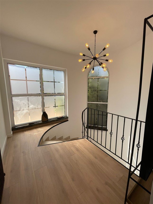 The beauty of this property is its full unprecedented privacy from the green landscape surrounding the property in a quiet residential street and the high quality of construction.