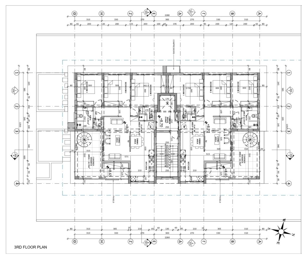 A modern 3- story building offers three-bedroom apartments. Contemporary open plan layouts, a cleverly designed master plan, large, covered verandas, and covered parking as well as an ideal location ensure comfortable living for the owners of the apartments.