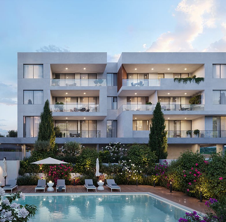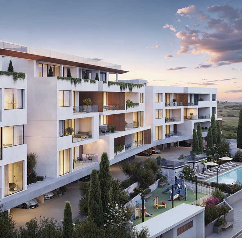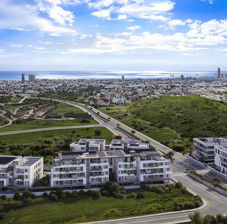 The complex located in a quiet valley of Germasogeia, surrounded by hills and olive trees, offer an affordable city living and consist of 4 blocks with their own unique design and features. All the apartments are designed as a perfect investment option for rental business and for a comfortable city life. Residents of the project will enjoy spacious covered verandas facing south, a private garden with 20 m communal swimming pool and kids playground, the top floors – breathtaking sea views. The surrounding neighbourhood is rapidly expanding new residential area within a close proximity to the Foley’s private school, kindergartens, hospitals, shopping, sport and other facilities.