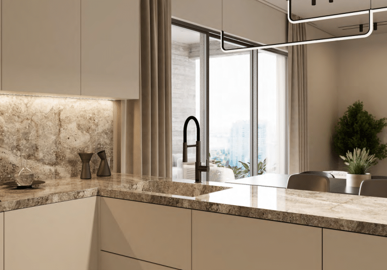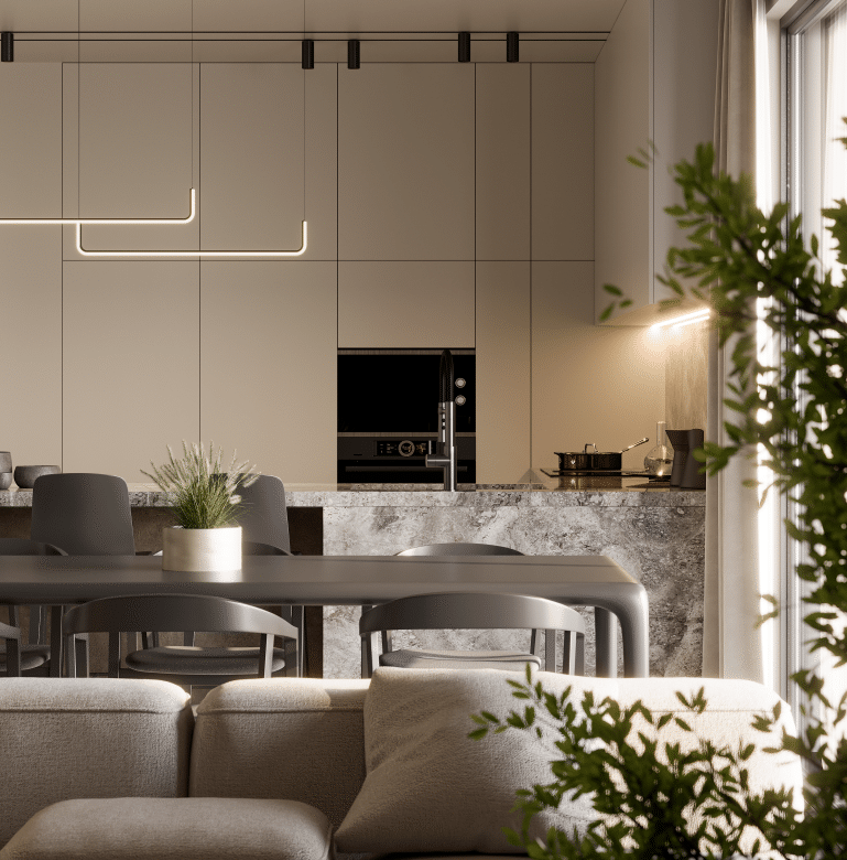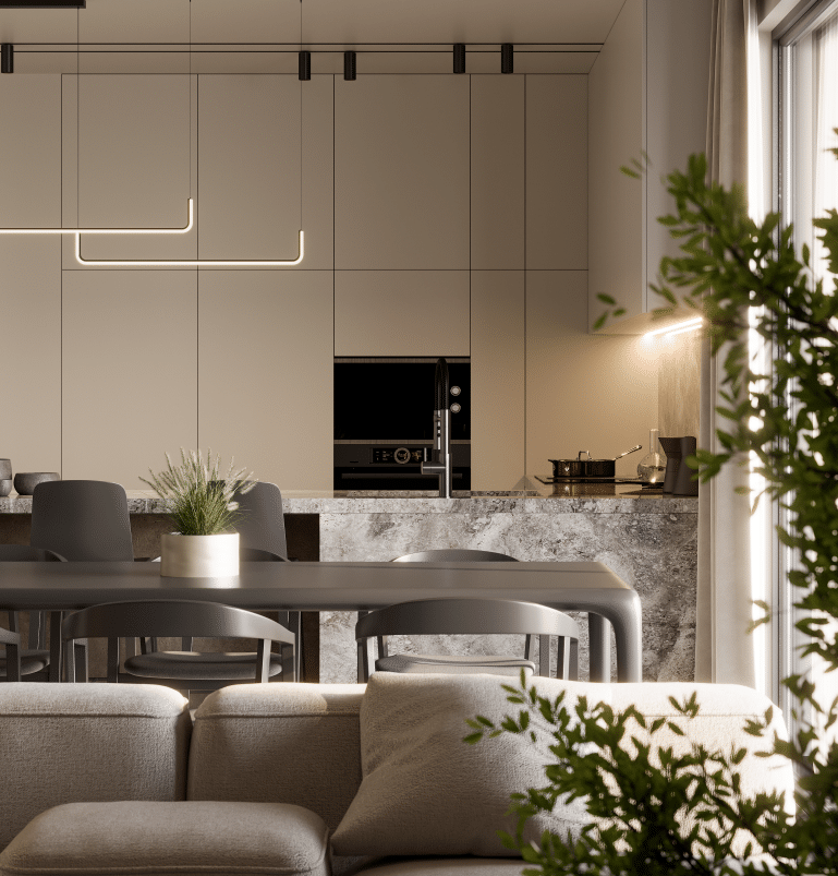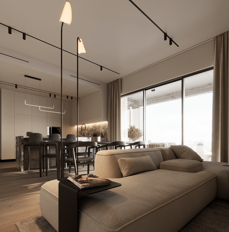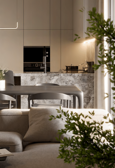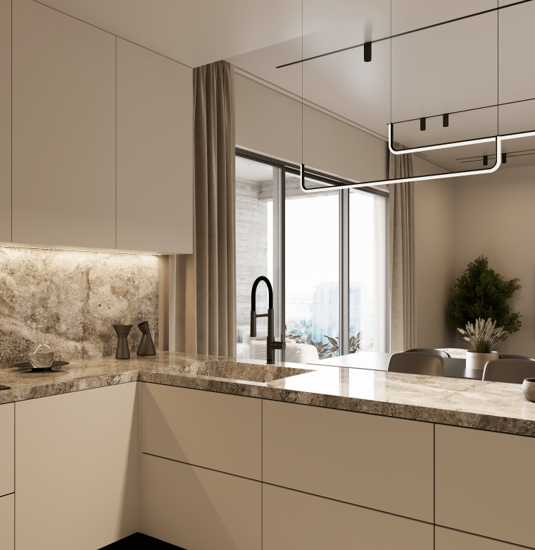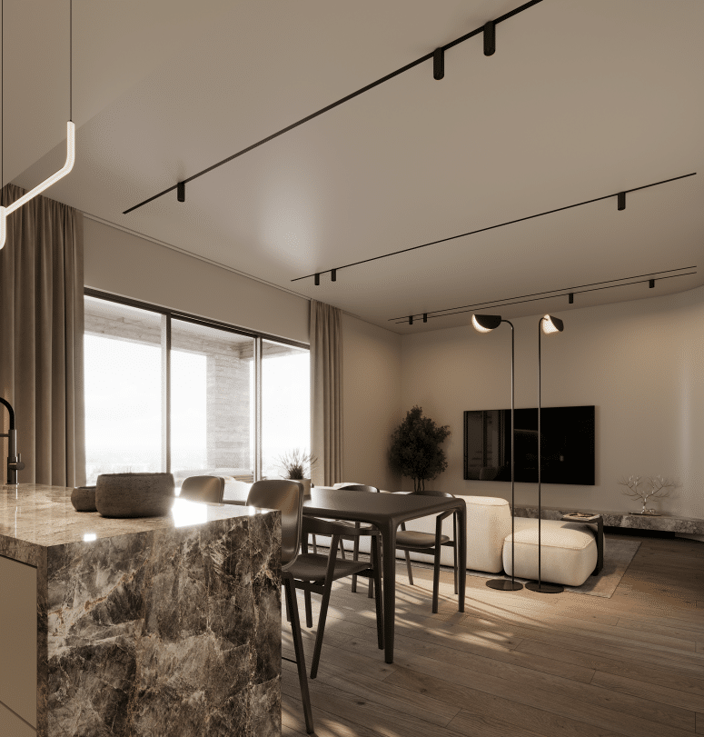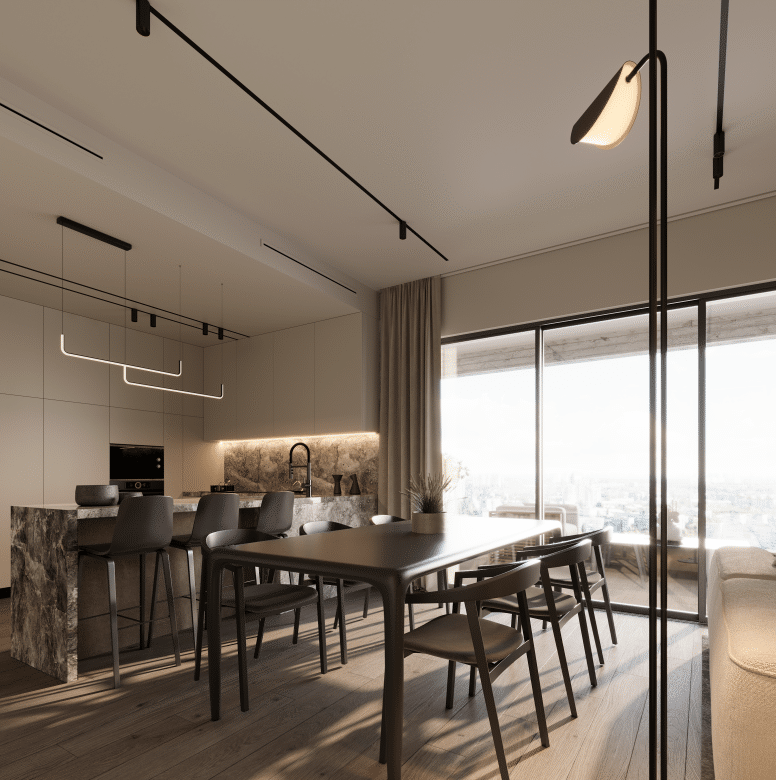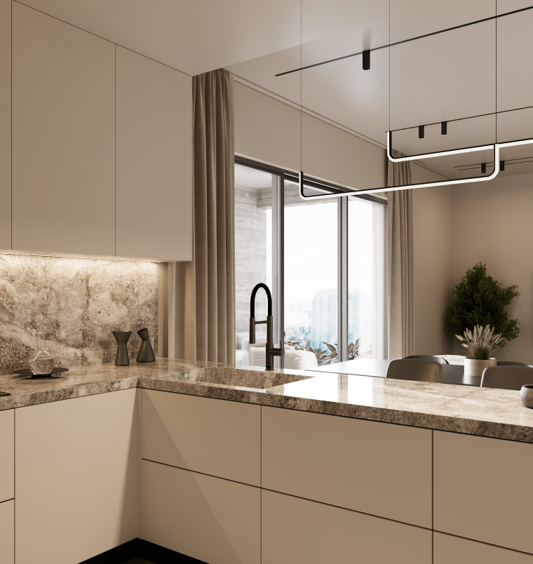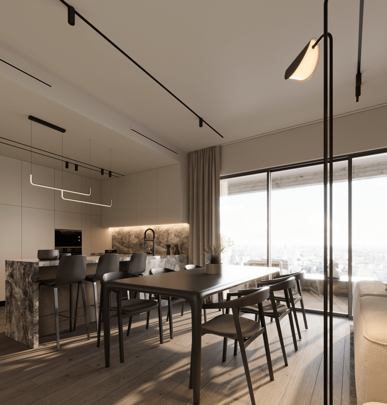The interior design draws inspiration from the richness of luxurious natural materials and textures. With these elements in mind, each apartment has been thoughtfully designed to strike a perfect balance between these elements. As a result – harmonious and unified spaces seamlessly blend functionality with aesthetics.